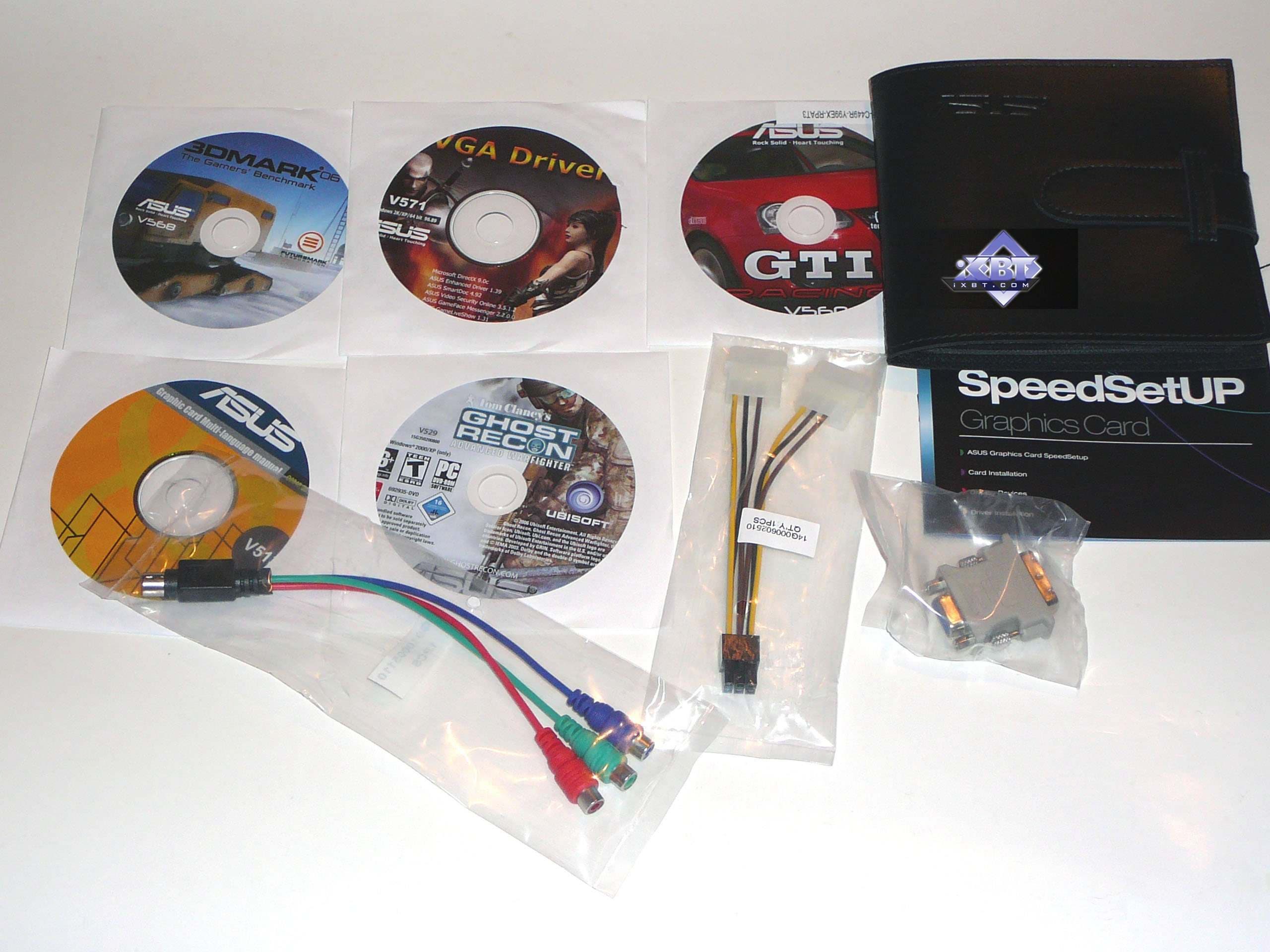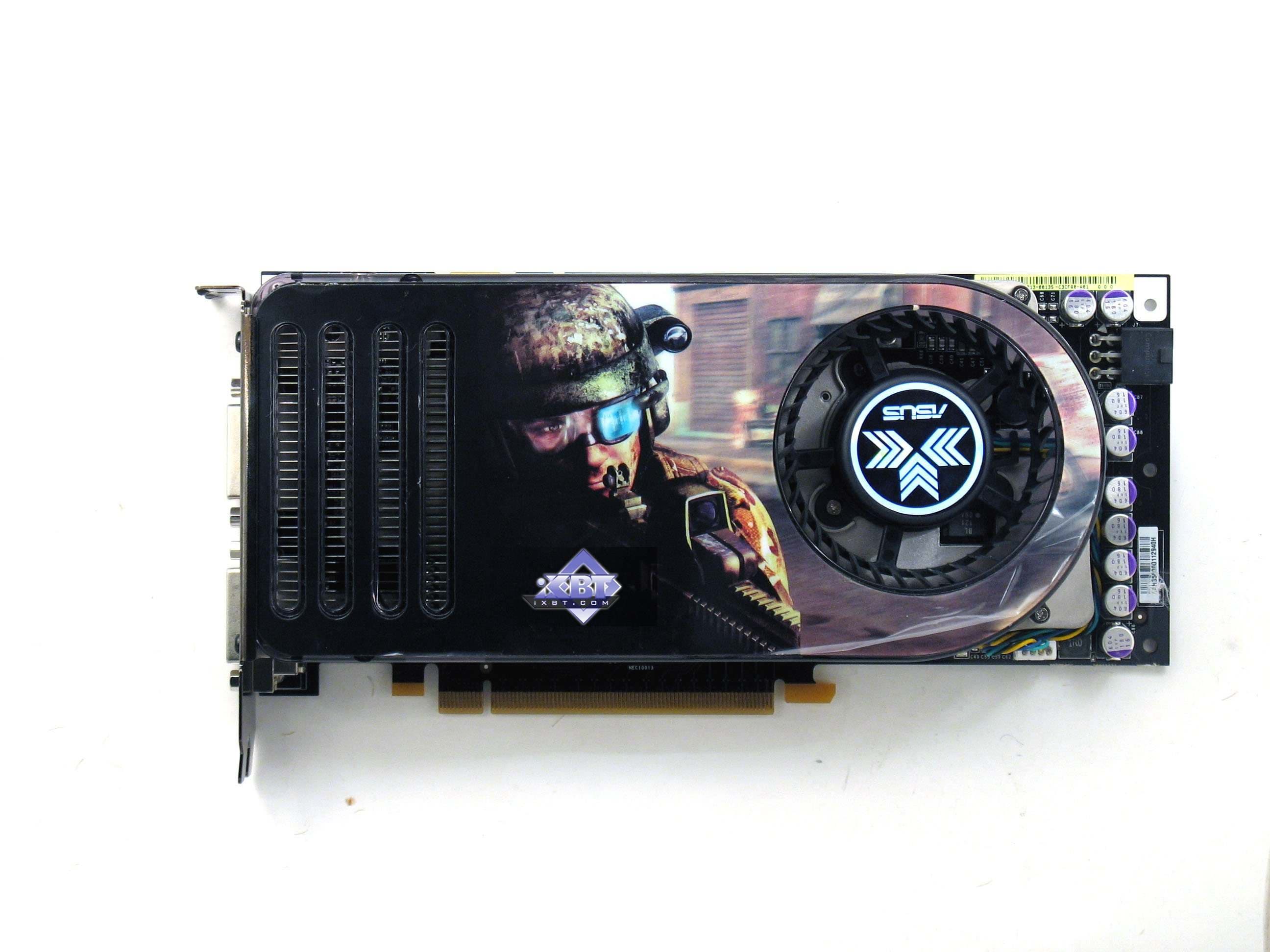 ASUS EN8800GTX (GeForce 8800 GTX) 768MB PCI-E — самый мощный на сегодня ускоритель. Поскольку это продукт, по сути, не ASUS, а просто референс-карта, то к нему в полной мере относится все, что было ранее сказано про такие ускорители. Ничего нового читатель у данной карты не найдет. Разве лишь комплект поставки с интересной игрой, да стильный кейс для CD. Качество карты на высоте, нареканий не было. Но надо иметь в виду все же, что такие карты могут сильно нагреваться, и поэтому просто необходимо, что корпус хорошо продувался.