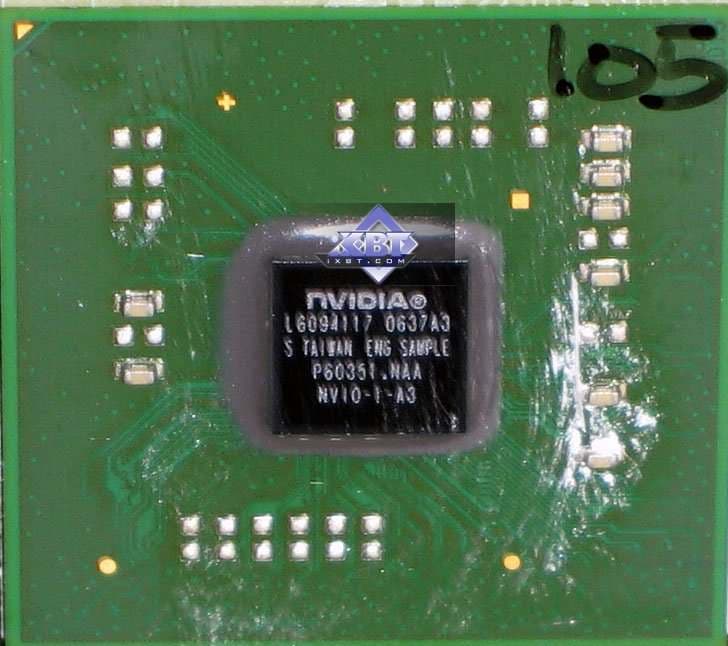 - Все интерфейсы вынесены на внешний дополнительный чип NVIO (2 RAMDAC, 2 Dual DVI, HDMI, HDTV)