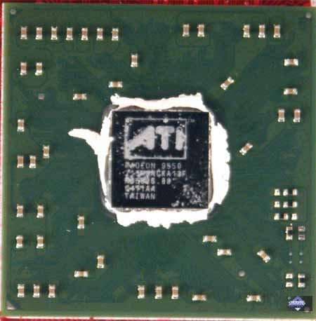 | Карта имеет интерфейс AGP x8/x4, 128 МБ памяти DDR SDRAM, размещенной в 8-ми микросхемах на лицевой и оборотной сторонах PCB. Микросхемы памяти EtronTech (BGA). Время выборки у микросхем памяти 3.3ns, что соответствует частоте работы 300 (600) МГц, память же работает на частоте 250 (500) МГц. Частота работы GPU — 400 MHz. Шина обмена с памятью — 128 bit. Обратите внимание на повышенные частоты относительно обычного RADEON 9550 (250/200 (400) MHz). | ![]() |