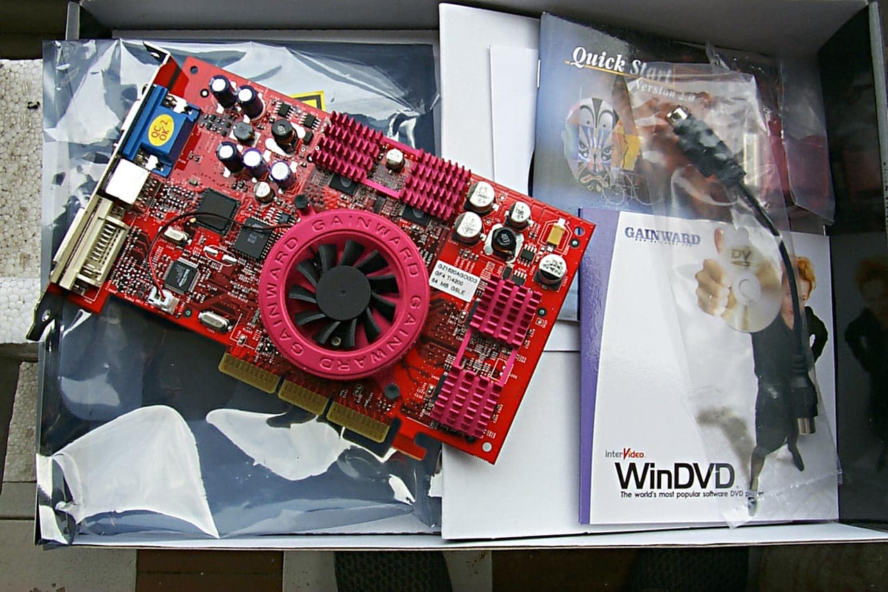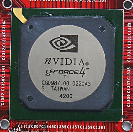 Под кулерами, разумеется, можно найти GPU — GeForce4 Ti 4200: