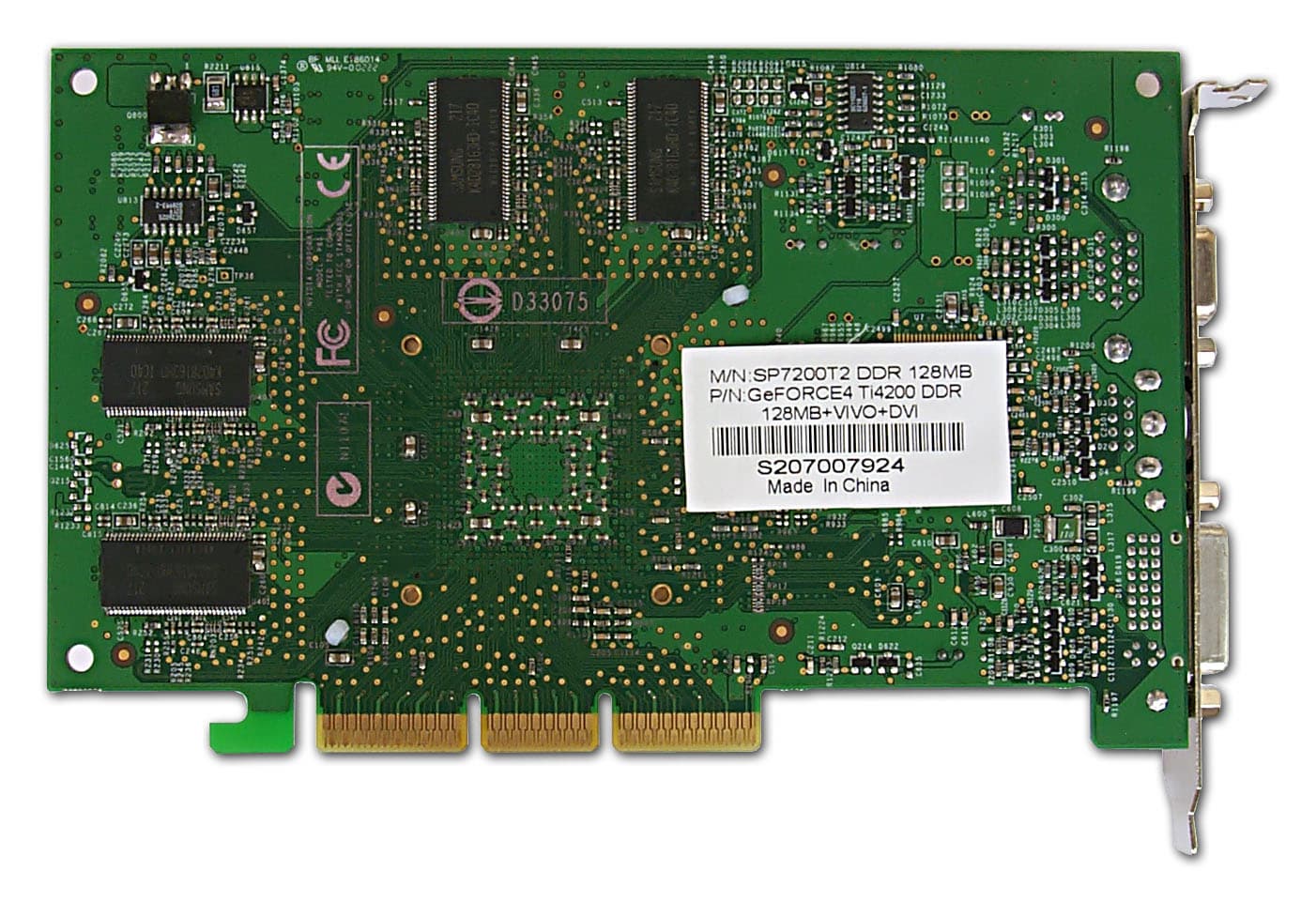 | Карта имеет AGP x2/x4 интерфейс, 128 МБ DDR SDRAM памяти, размещенной в 8-ми микросхемах на обеих сторонах PCB. На видеокарте установлены модули памяти от Samsung со временем выборки 4ns, что соответствует частоте работы 250 (500) МГц, на которой память и работает (обратите внимание на повышенную частоту работы памяти относительно номинальной для 128-мегабайтных карт — 222 (444) МГц). GPU функционирует на обычной для Ti 4200 частоте 250 МГц. | ![]() |