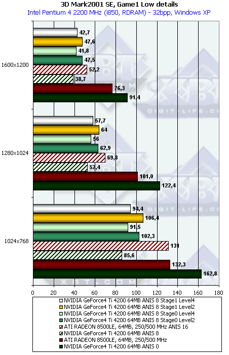 - Тестирование на базе Pentium 4 2200 МГц, 1024x768, Game1 Low