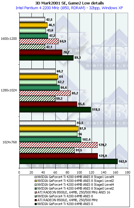 - Тестирование на базе Pentium 4 2200 МГц, 1600x1200, Game2 Low