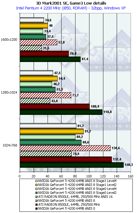 - Тестирование на базе Pentium 4 2200 МГц, 1600x1200, Game3 Low