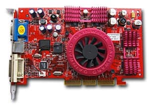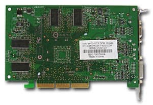 | Карта имеет AGP x2/x4 интерфейс, 64 МБ DDR SDRAM памяти, размещенной в 8-ми микросхемах на обеих сторонах PCB. На видеокарте установлены модули памяти от EtronTech со временем выборки 3.3ns, что соответствует примерно частоте работы 300 (600) МГц, память же работает на частоте 256 (513) МГц. GPU функционирует на частоте 250 МГц. | ![]() |