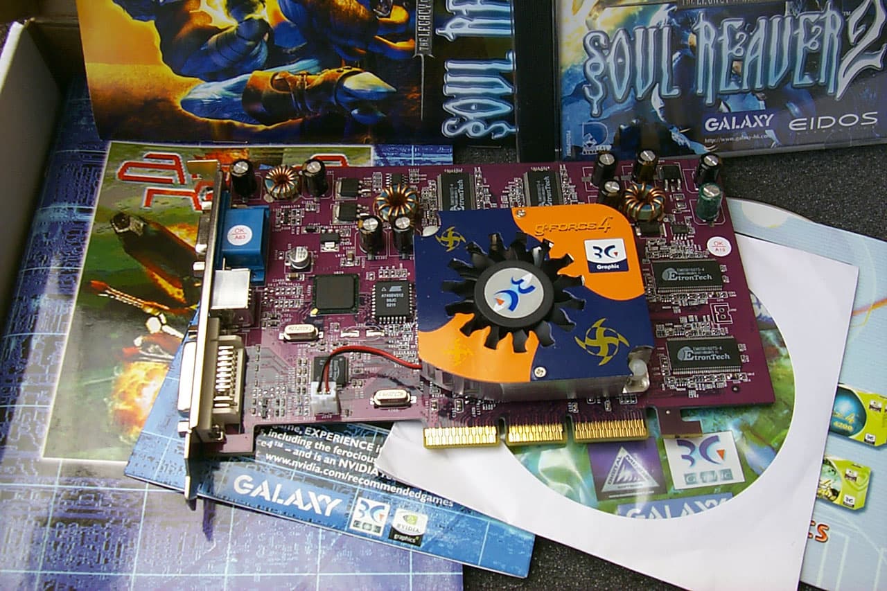 Под кулерами, разумеется, можно найти GPU — GeForce4 Ti 4200: