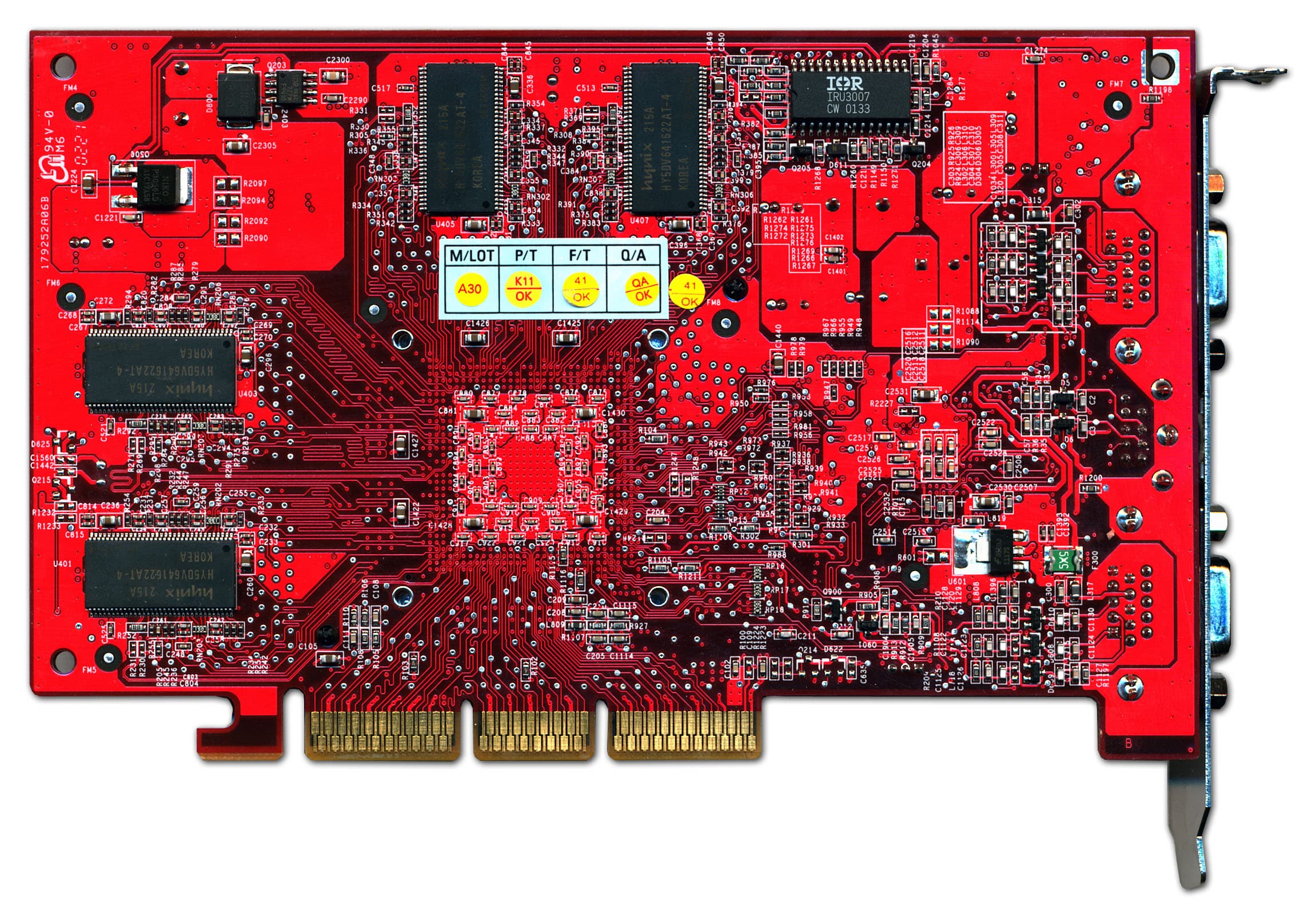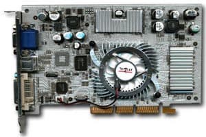 | Карта имеет интерфейс AGP x2/x4, 64 МБ памяти DDR SDRAM, размещенной в 8-ми микросхемах на обеих сторонах PCB. На видеокарте установлены модули памяти от Hynix со временем выборки 3.3ns, что соответствует примерно частоте работы 300 (600) МГц, память же работает на частоте 275 (550) МГц. GPU функционирует на частоте 250 МГц. | ![]() |