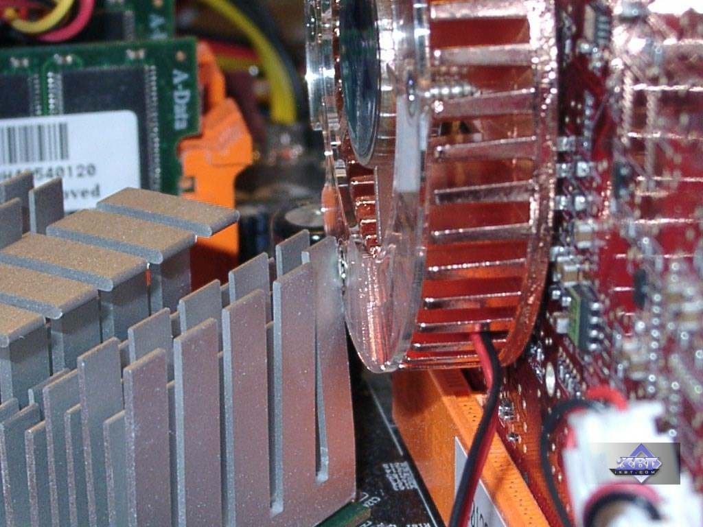 - Дизайн карты от MSI немного отличается от эталонного у 5900 Ultra, вся правая часть, отвечающая за питание карты, переработана. Есть сведения, что вышел новой эталонный дизайн от NVIDIA с укороченной PCB и заменой элементов. Вероятно, на нем и базируется карта от MSI. В целом длина карты стала равна длине GF4 Ti 4600 (NV25):