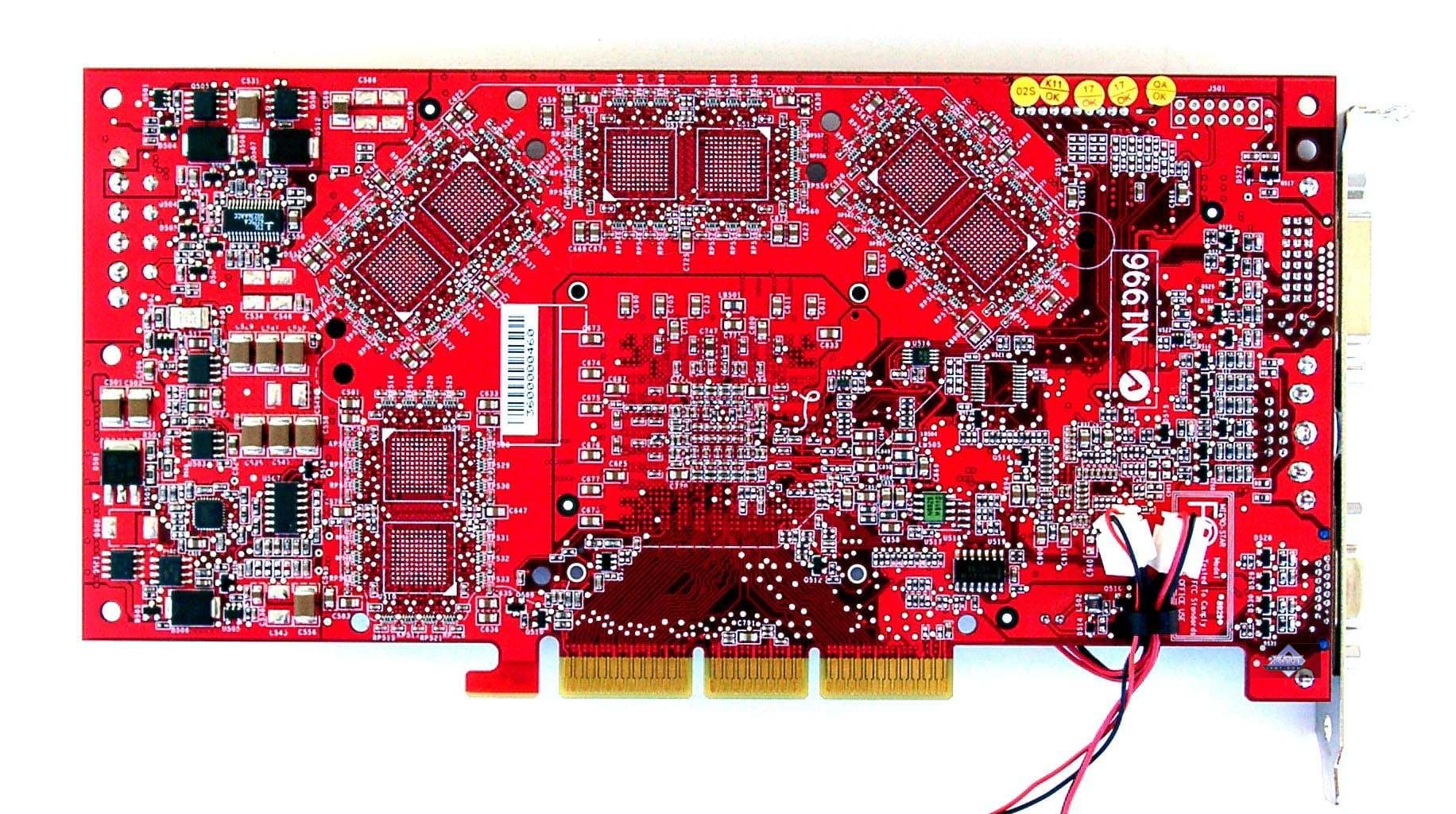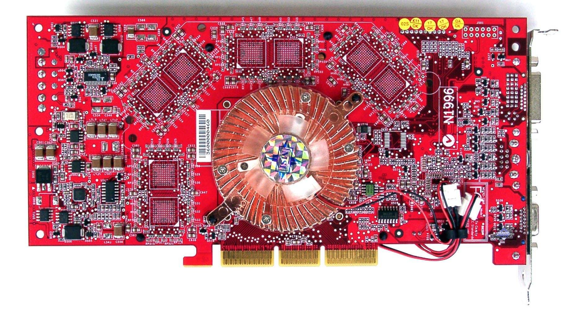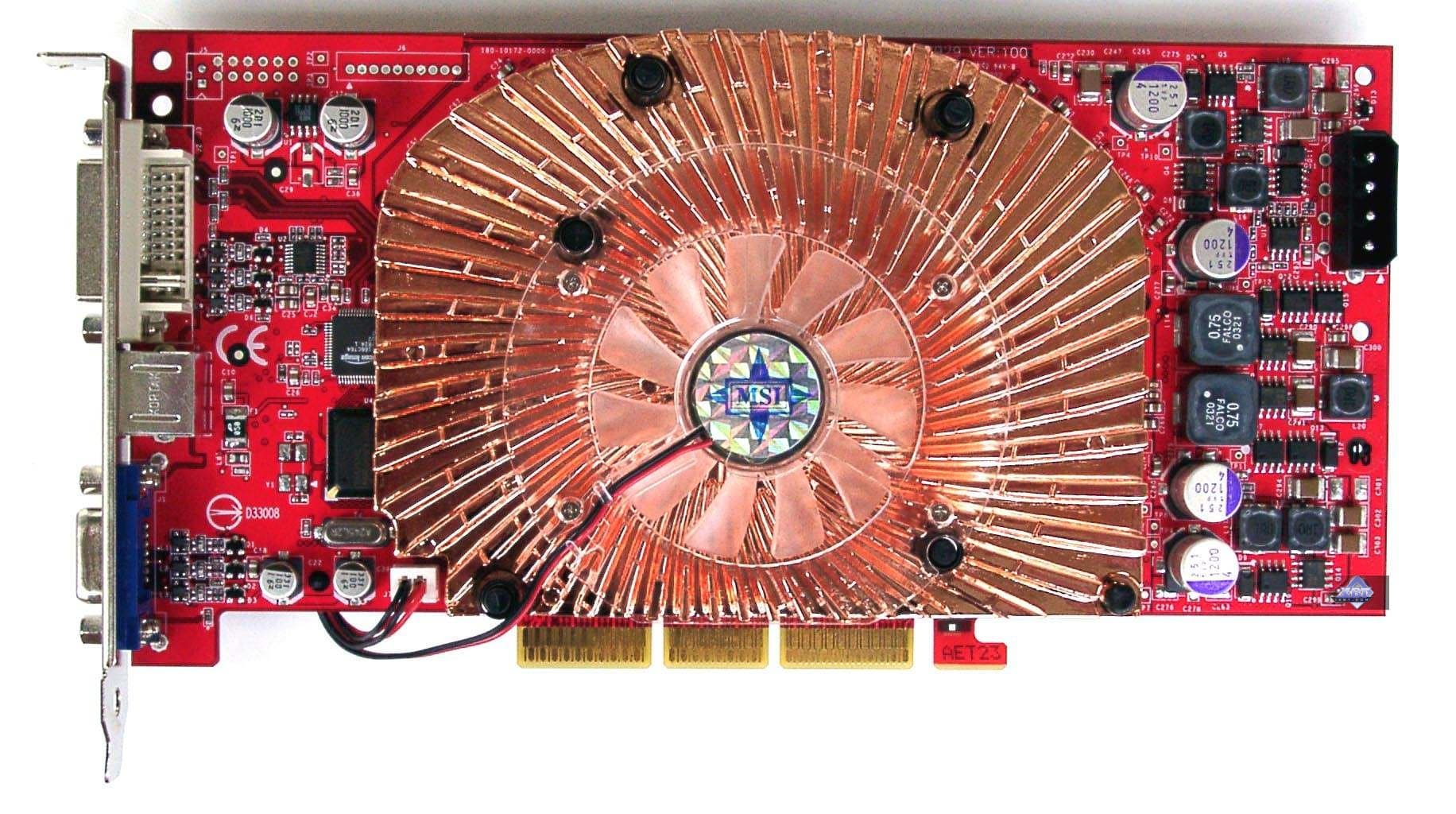 | Карта имеет интерфейс AGP x8/x4/x2, 128 МБ памяти DDR SDRAM , размещенной в 8-ми микросхемах на лицевой стороне PCB. | |