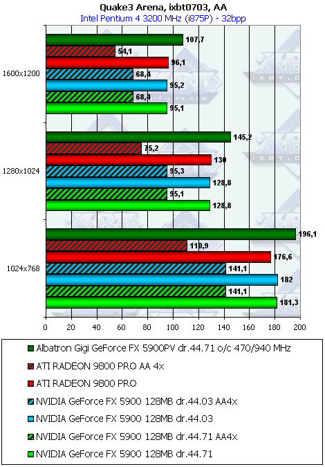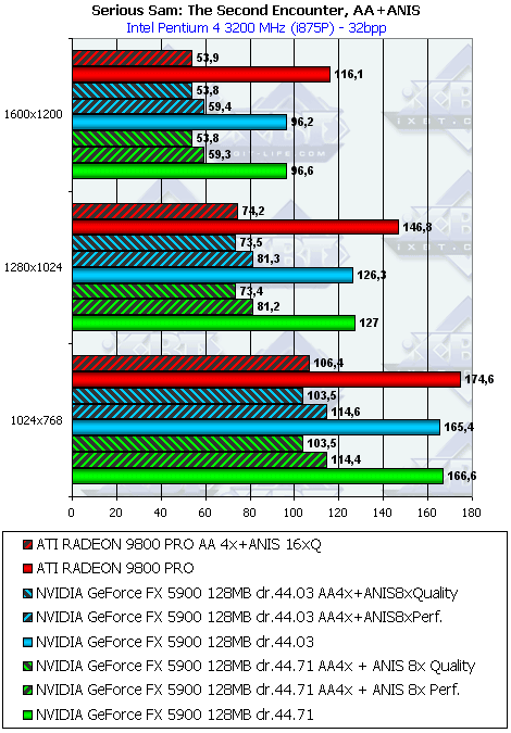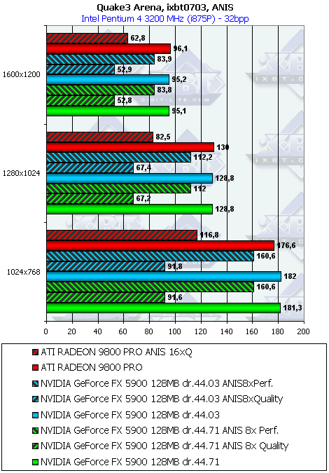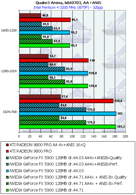 Ну а что касается сравнения с RADEON 9800 PRO, то выигрыш только при АА и маленький при АА+Анизотропия performance.