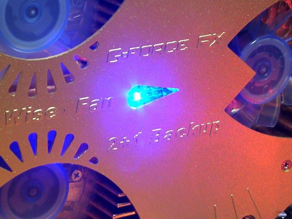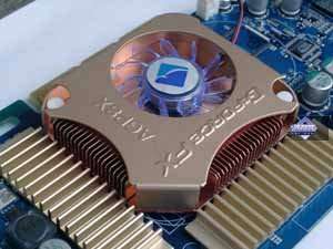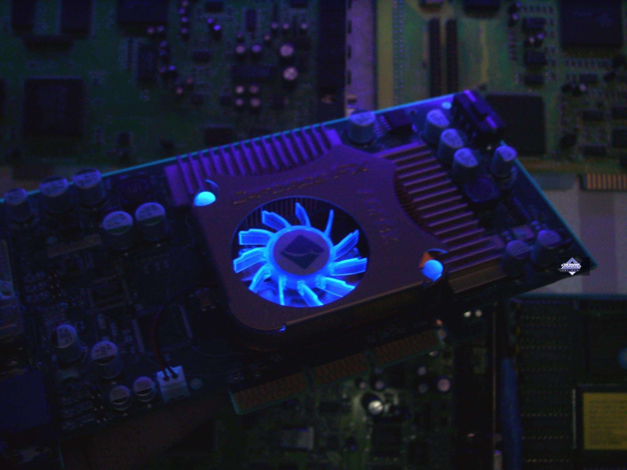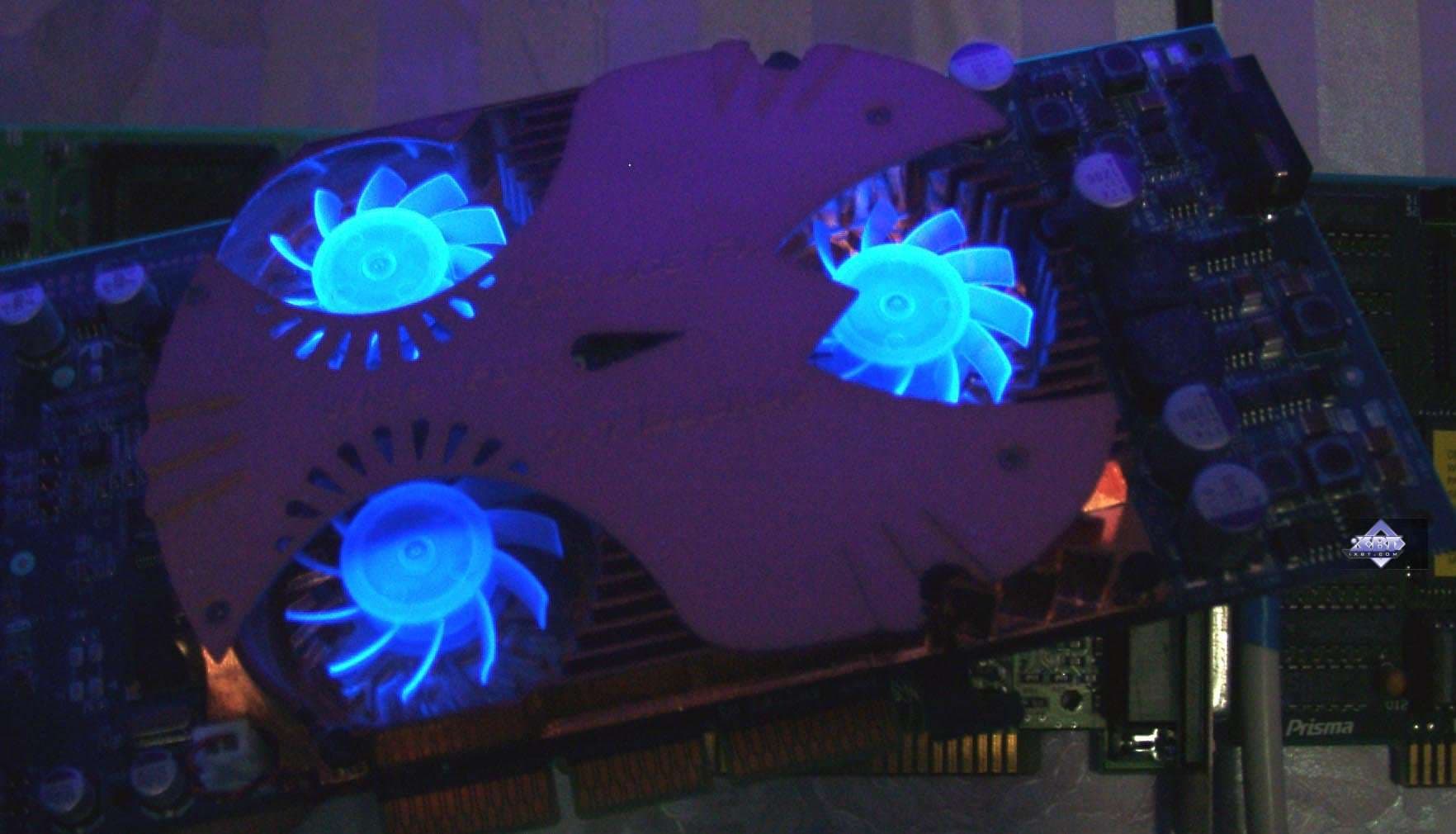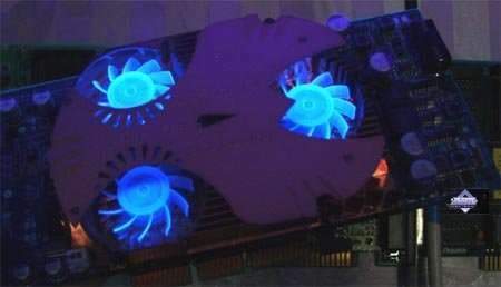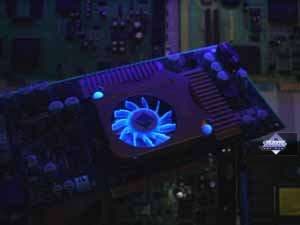 Перед тем, как завершить с самими платами, напомню, что все вентиляторы у карт от Albatron имеют крылатки с покрытыем, светящимся в ультрафиолетовых лучах: