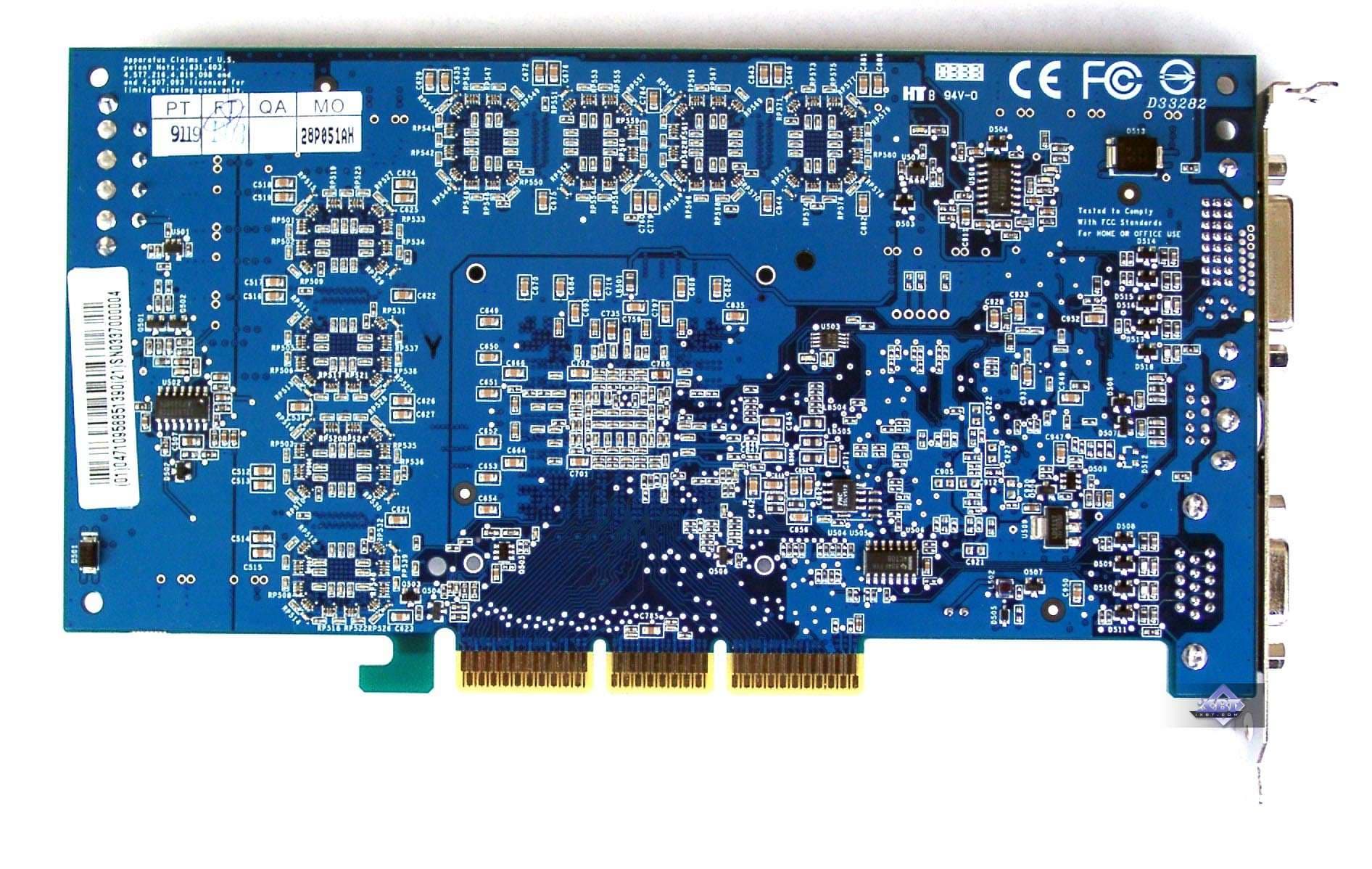 | Карты имеют интерфейс AGP x8/x4/x2, 128 МБ памяти DDR SDRAM , размещенной в 8-ми микросхемах на лицевой стороне PCB. | |