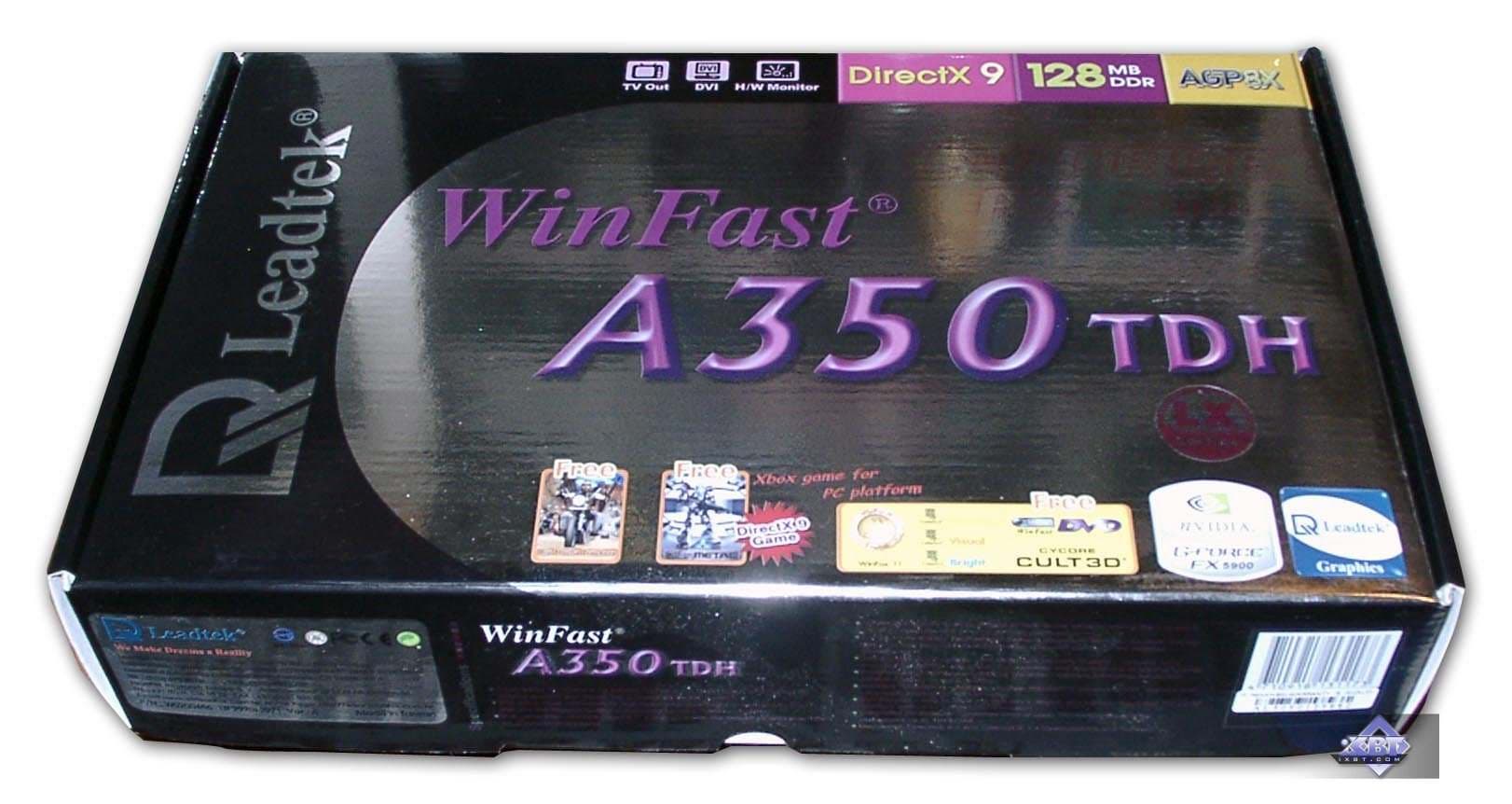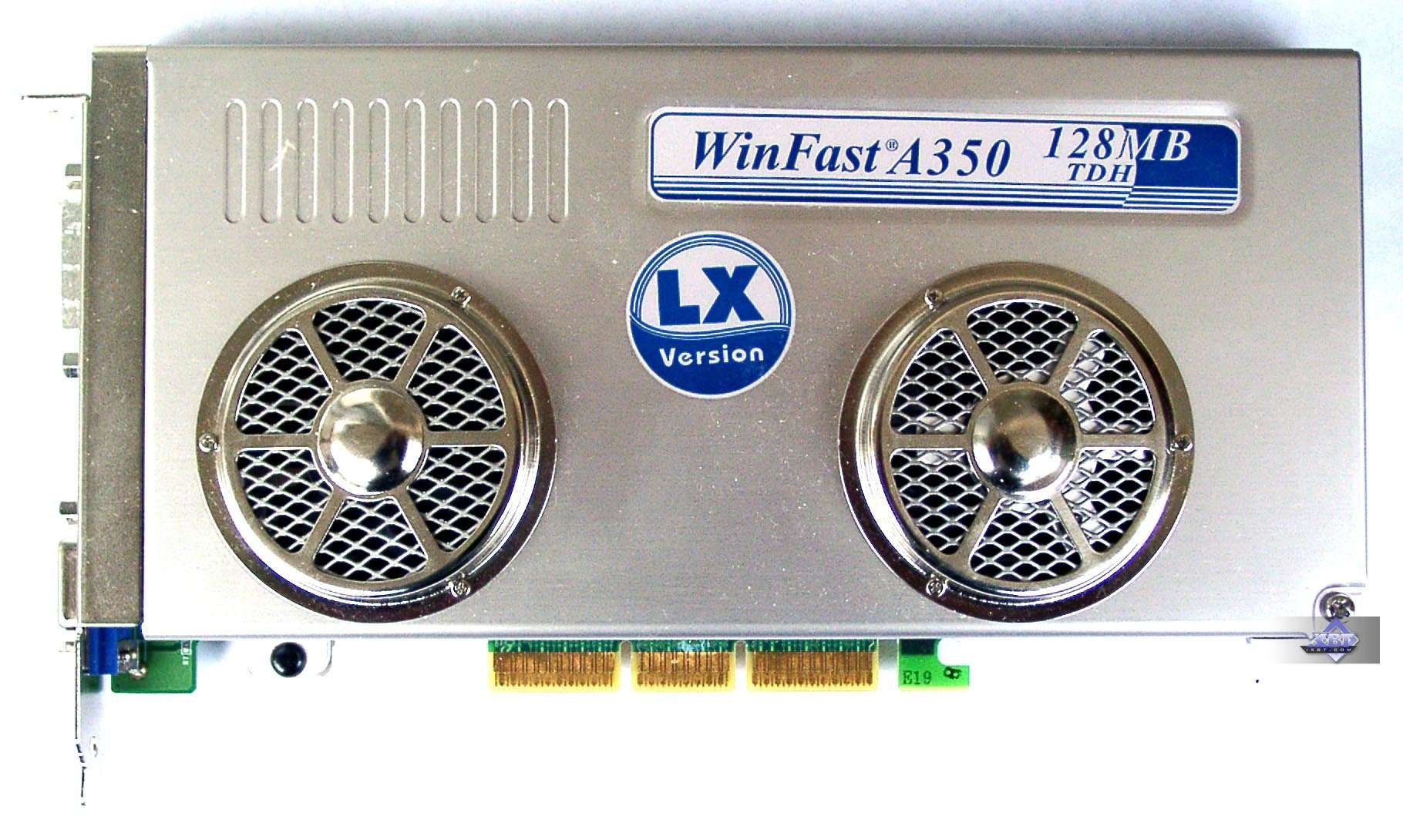 - Leadtek A350LX TDH 128MB — карта, работающая на уровне предыдущей, но имеющая более дорогую PCB от FX 5900. Впрочем, это не помешало установлению цены в $280-290 на конец октября. Но и этого мало, ведь проигрыш сопернику в лице RADEON 9800 очевиден (на считая нескольких старых тестов). Качество самой карты отменное, а вот система охлаждения подкачала, сделав продукт не полностью совместимым со всеми системными платами. Плюс надо еще больше снижать цены, чтобы возможности карты стали адекватными ее стоимости.