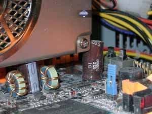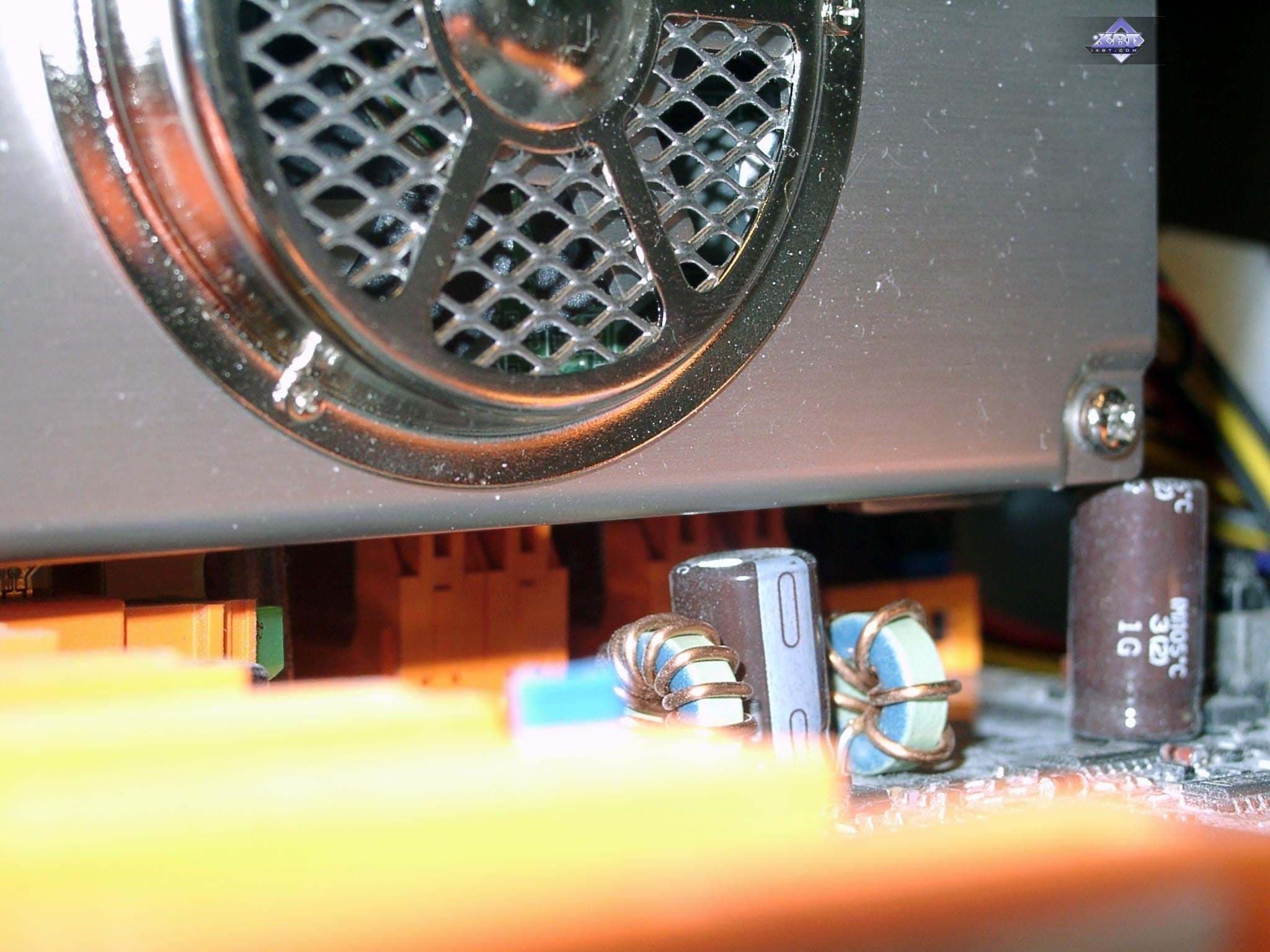 Надо сказать, что установить Leadtek A350LX TDH 128MB в системную плату DFI I875P было не так просто — мешал конденсатор на материнке, в который упиралась система охлаждения (впрочем, правильнее сказать — мешала система охлаждения, а не конденсатор).