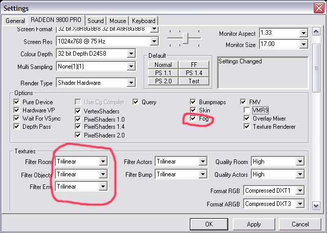 VSync отключен, технология S3TC ОТКЛЮЧЕНА в приложениях.