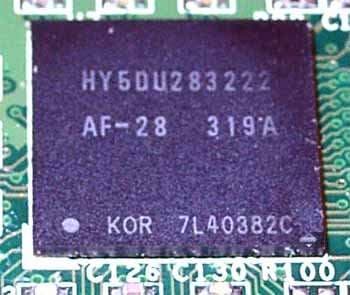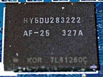 | Микросхемы памяти производства Hynix. Время выборки у микросхем памяти 2.8ns, что соответствует частоте работы 350 (700) МГц, на которой память и работает. Частота работы GPU — 400 MHz. Интерфейс обмена с памятью — 256 бит. | ![]() |