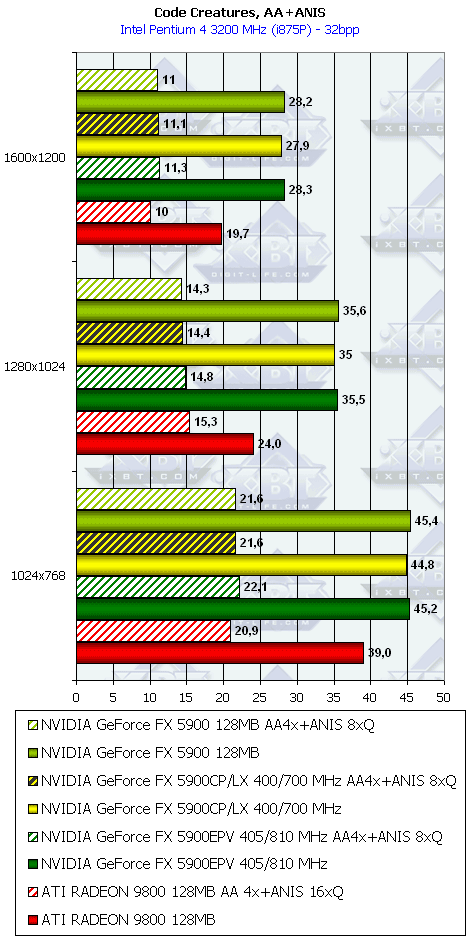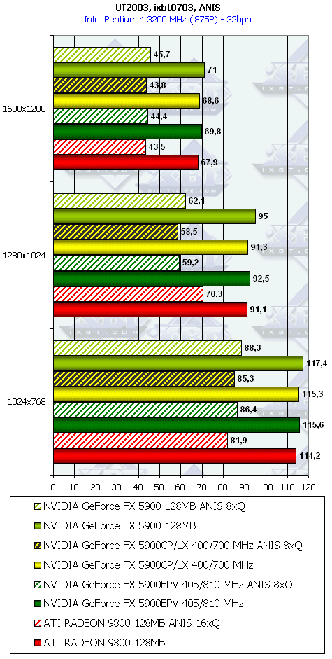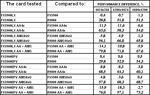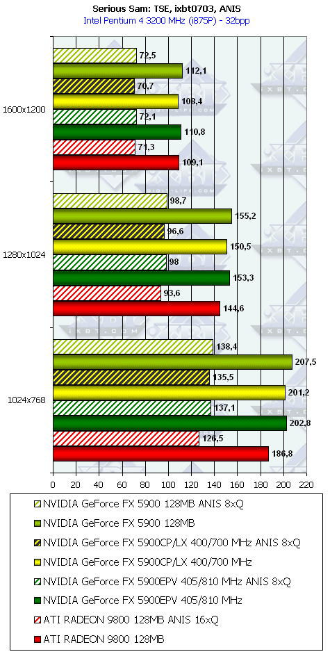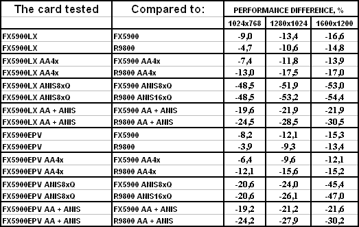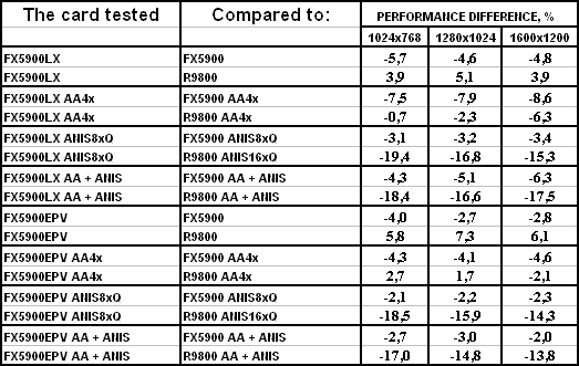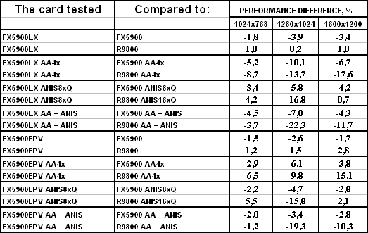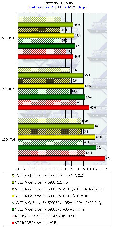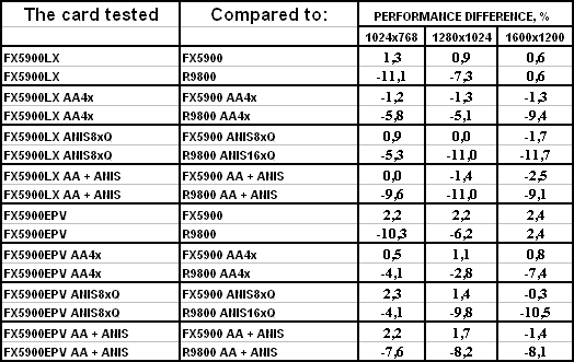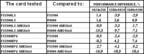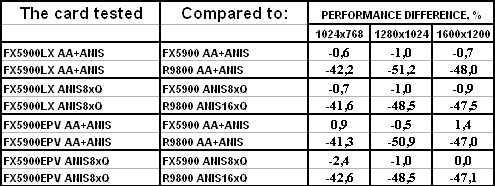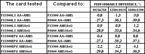 Самые легкие режимы без анизотропии: GeForce FX 5900LX/CP/EPV чуток, но впереди