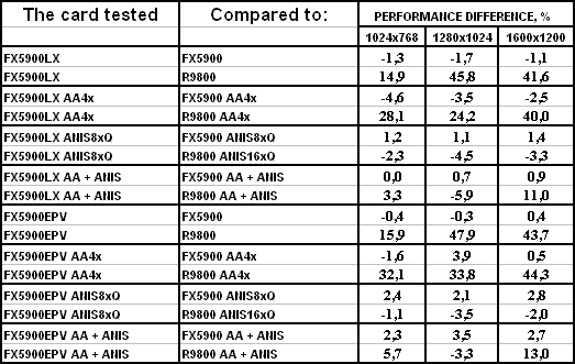 При включенном АА: GeForce FX 5900LX/CP/EPV проиграли