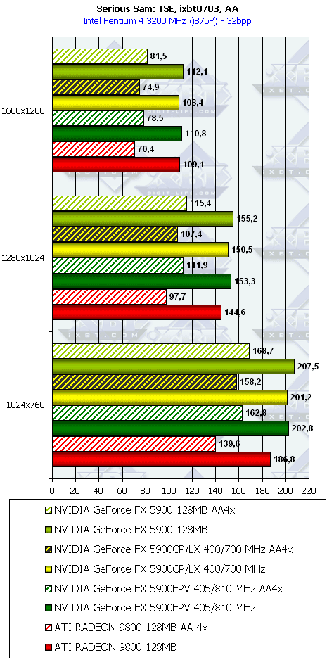 - Serious Sam: The Second Encounter v.1.05 (Croteam/GodGames) — OpenGL, мультитекстурирование, ixbt0703-demo, настройки тестирования: quality, S3TC OFF