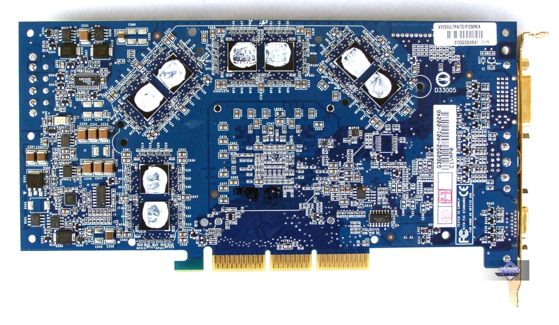 | Карта имеет интерфейс AGP x8/x4/x2, 256 МБ памяти DDR SDRAM , размещенной в 16-ти микросхемах на лицевой и оборотной сторонах PCB. | |