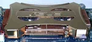 Думаю, что нет смысла снова рассказывать о кулере, который мы уже видели в обзоре по ASUS V9950 Ultra. Это двухвентиляторное устройство, базируемое на медном радиаторе. | ![]() |