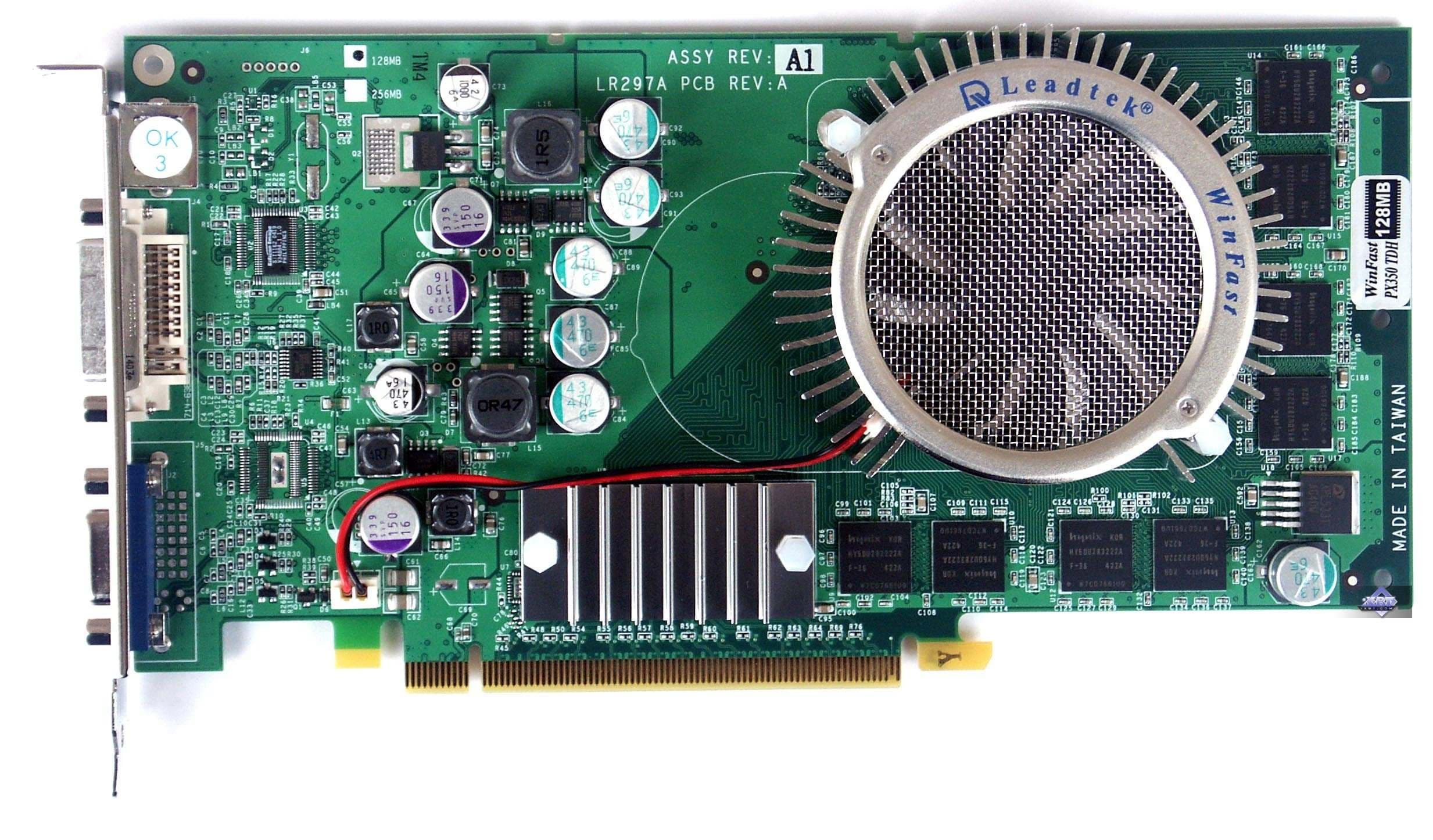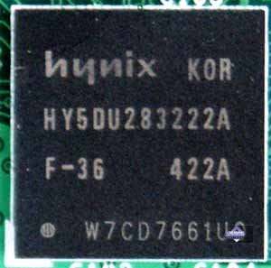 | Микросхемы памяти Hynix. Время выборки у микросхем памяти 2.8ns, что соответствует частоте работы 350 (700) МГц, но память работает на частоте 275 (550) МГц. (Прошу снова обратить внимание, что память работает на частотах сильно ниже, чем у AGP-аналога - FX 5900XT (350 (700) MHz).. Частота работы GPU — 350 MHz (Частота снова ниже, чем у FX 5900XT (390 MHz). Шина обмена с памятью — 256 bit. Число пиксельных конвейеров x число текстурных блоков — 4х2. | ![]() |
