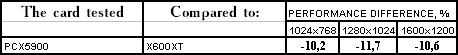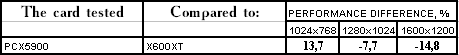 Итак, мы увидели, что несмотря на то, что FX5900 XT (ну и PCX5900, соответственно) относятся как бы к более высокой категории, чем RADEON 9600XT (и X600 XT, соответственно), в старых играх (и в некоторых новых) PCX5900 выигрывает, но во всех новых и насыщенных шейдерными технологиями играх он сильно проигрывает сопернику X600 XT. Причем, намного чаще и сильнее, чем, например, FX5900 XT проигрывал RADEON 9600 XT, что объяснимо пониженными частотами у PCX5900.