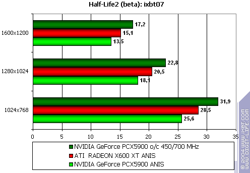 - Half-Life2 (Valve/Sierra) — DirectX 9.0, два разных записанных demo. Тестирование проводилось при включенной анизотропной фильтрации.