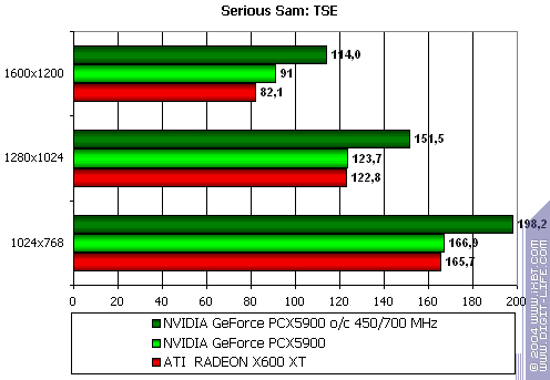 Почти паритет с X600 XT, за исключением высокого разрешения 1600х1200.