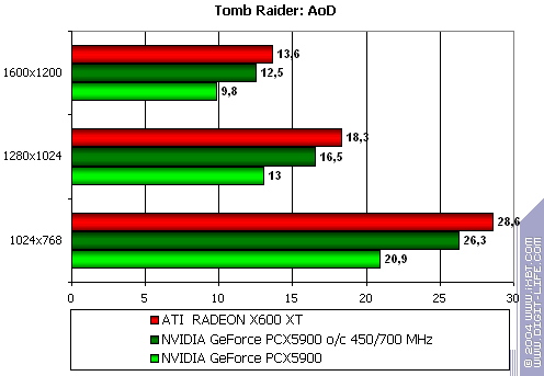 - Tomb Raider: Angel of Darkness v.49 (Core Design/Eldos Software) — DirectX 9.0, Paris5_4 demo, настройки тестирования приведены здесь.