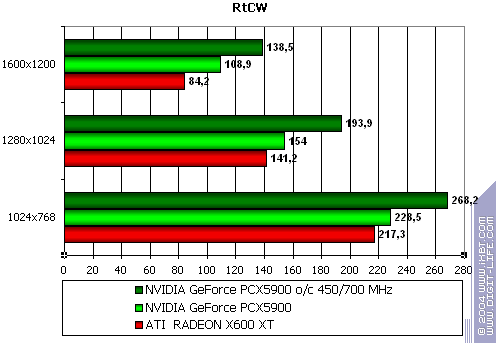 - Return to Castle Wolfenstein (MultiPlayer) (id Software/Activision) — OpenGL, мультитекстурирование, ixbt0703-demo, настройки тестирования — все на максимально возможном уровне, S3TC OFF, конфигурации можно скачать тут