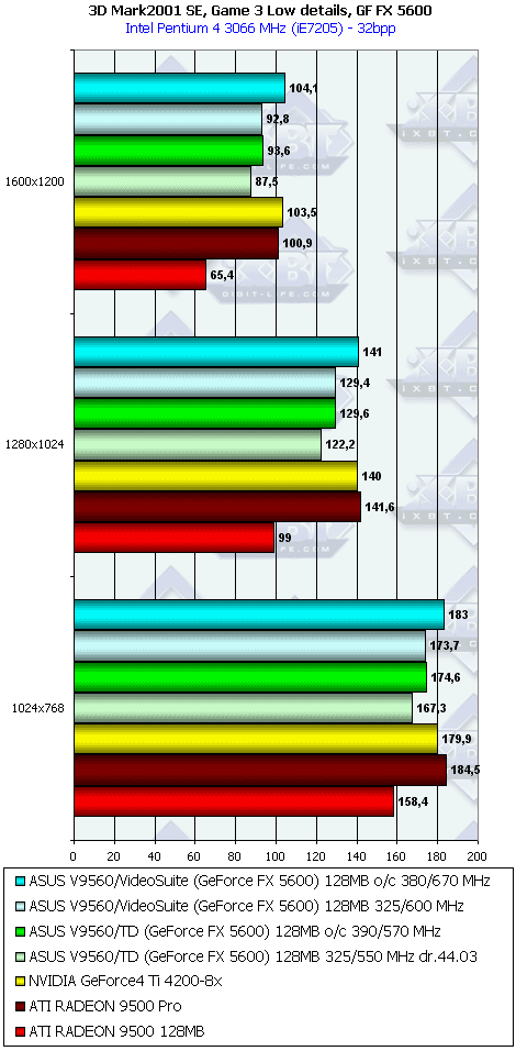 - ASUS V9560/VideoSuite 128MB эта карта будет еще более привлекательной даже против RADEON 9500 PRO, учитывая наличие VIVO, аппаратного мониторинга состояния и повышенных частот работы памяти;