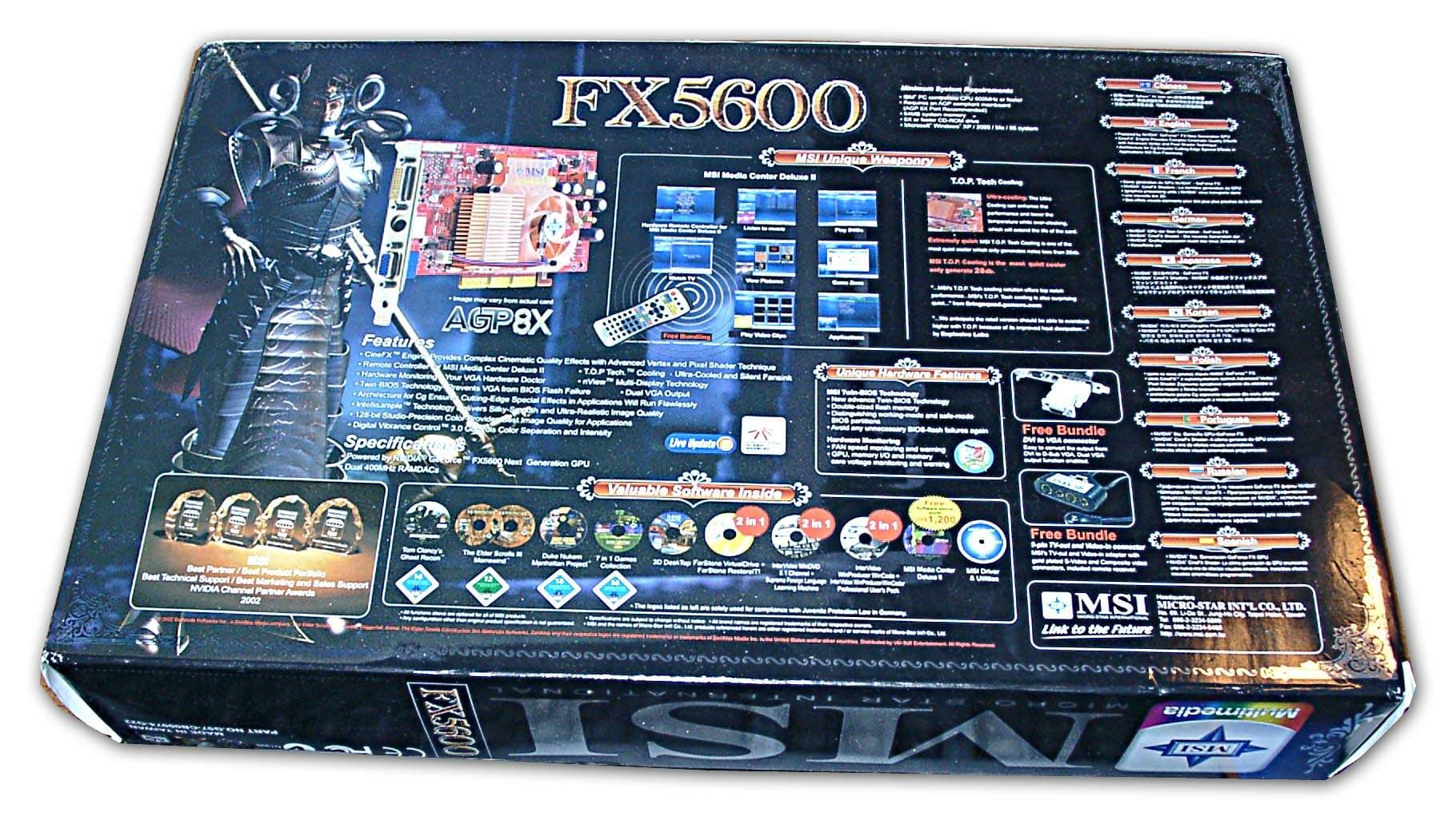 А пока вернемся к GeForce FX 5600. Как показали наши предыдущие рассуждения, владельцам GeForce4 Ti, которым нужна только скорость и еще раз скорость, могут на GF FX 5600 и не смотреть. Хотя, если речь идет о скорости с анизотропной фильтрацией, то смотреть надо и еще раз надо. Ведь у GF4 — катастрофическое падение производительности при активизации этой функции! Что у GF FX 5600 — увидим ниже. Собственно, сегодня мы рассматриваем продукт не только ради скорости или качества в 3D. После изучения платы и комплекта поставки можно уже говорить о том, что это пример для многих других производителей, КАК НАДО преподносить и комплектовать продукт!