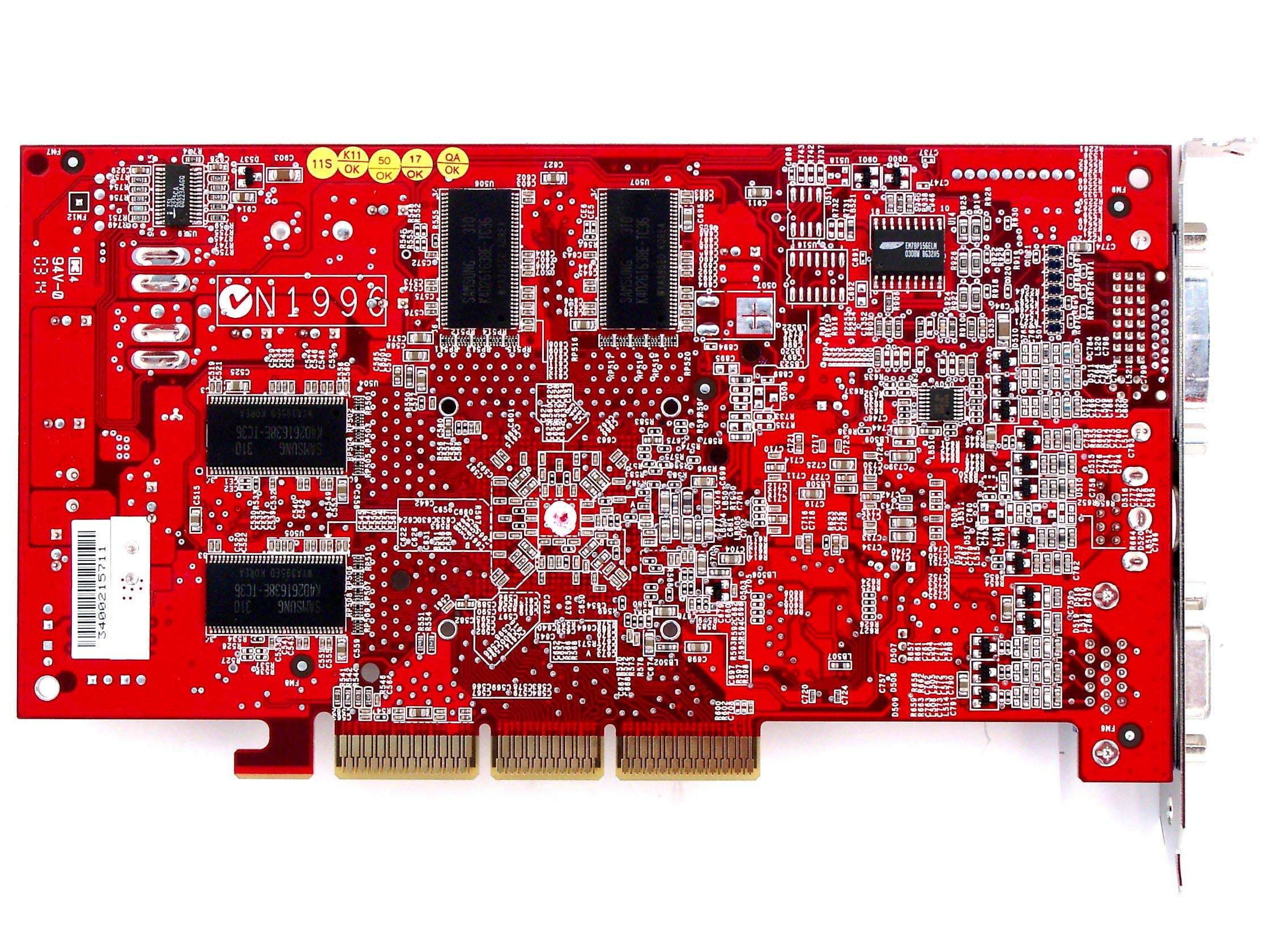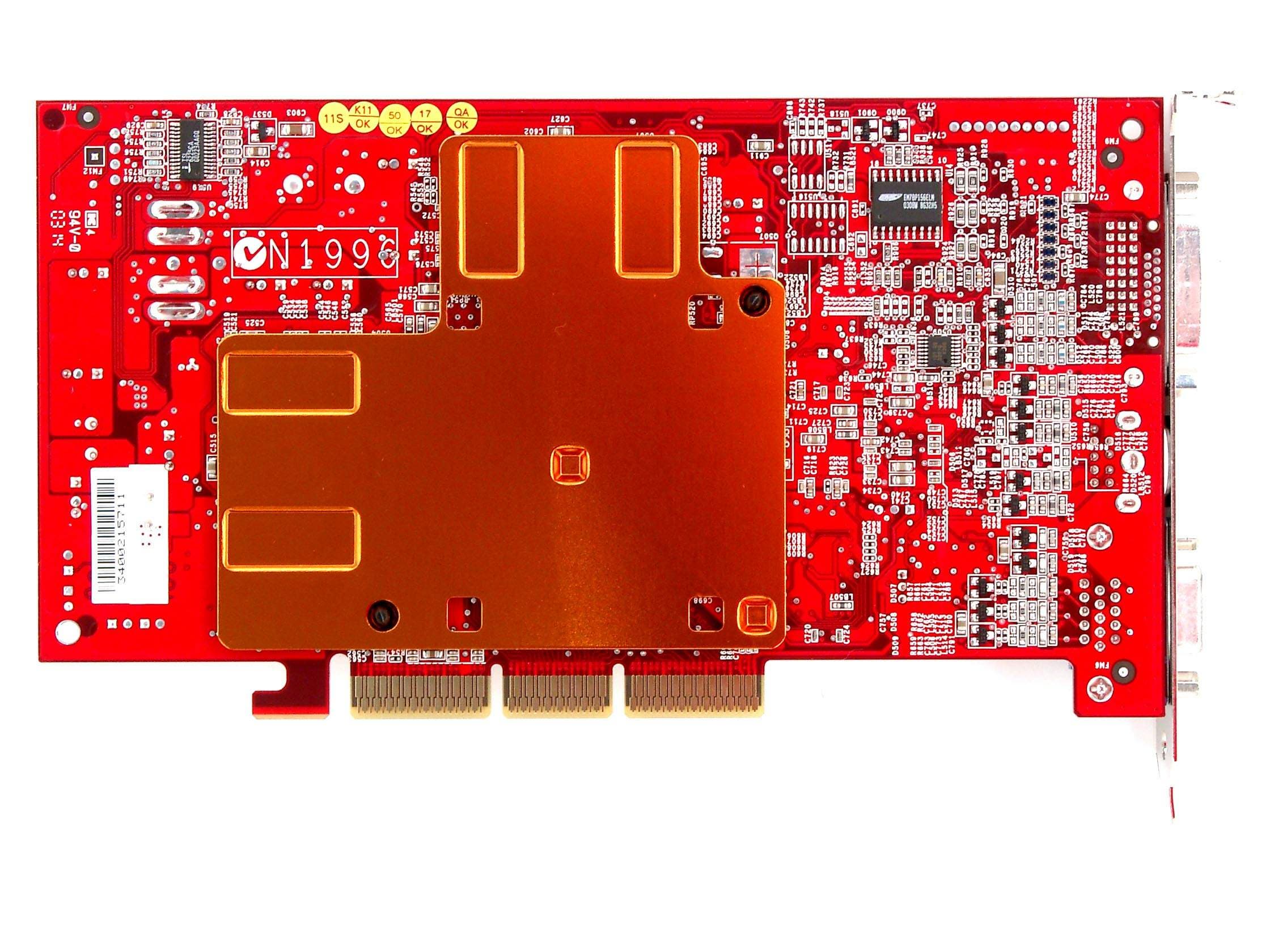 | Карта имеет интерфейс AGP x8/x4/x2, 128 МБ памяти DDR SDRAM, размещенной в 8-ми микросхемах на лицевой и оборотной сторонах PCB. | |