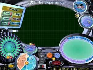 Как уже ясно из вышесказанного, продукт обладает поддержкой аппаратного мониторинга состояния карты. Управлением этой функцией занимается программа 3D Turbo, которая также позволяет регулировать частоты работы карты. К сожалению, пока не вышла версия этой утилиты, поддерживающая GeForce FX (на днях должна выйти)