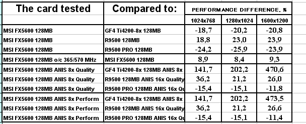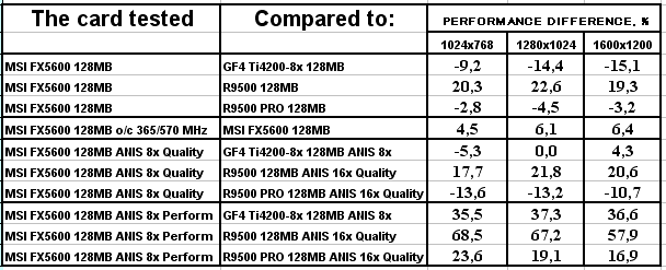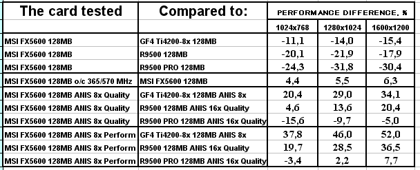 Что же такое GeForce FX 5600? По логике вещей он призван вытеснить GeForce4 Ti 4200, как 5600 Ultra должен убрать GeForce4 Ti 4600(4800). Способны ли эти новинки на такой подвиг? Наши проведенные ранее исследования показали, что с трудом, если речь идет только о скорости. Но!