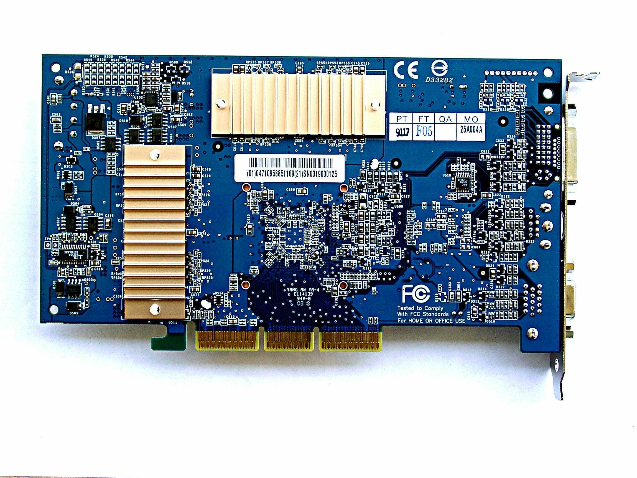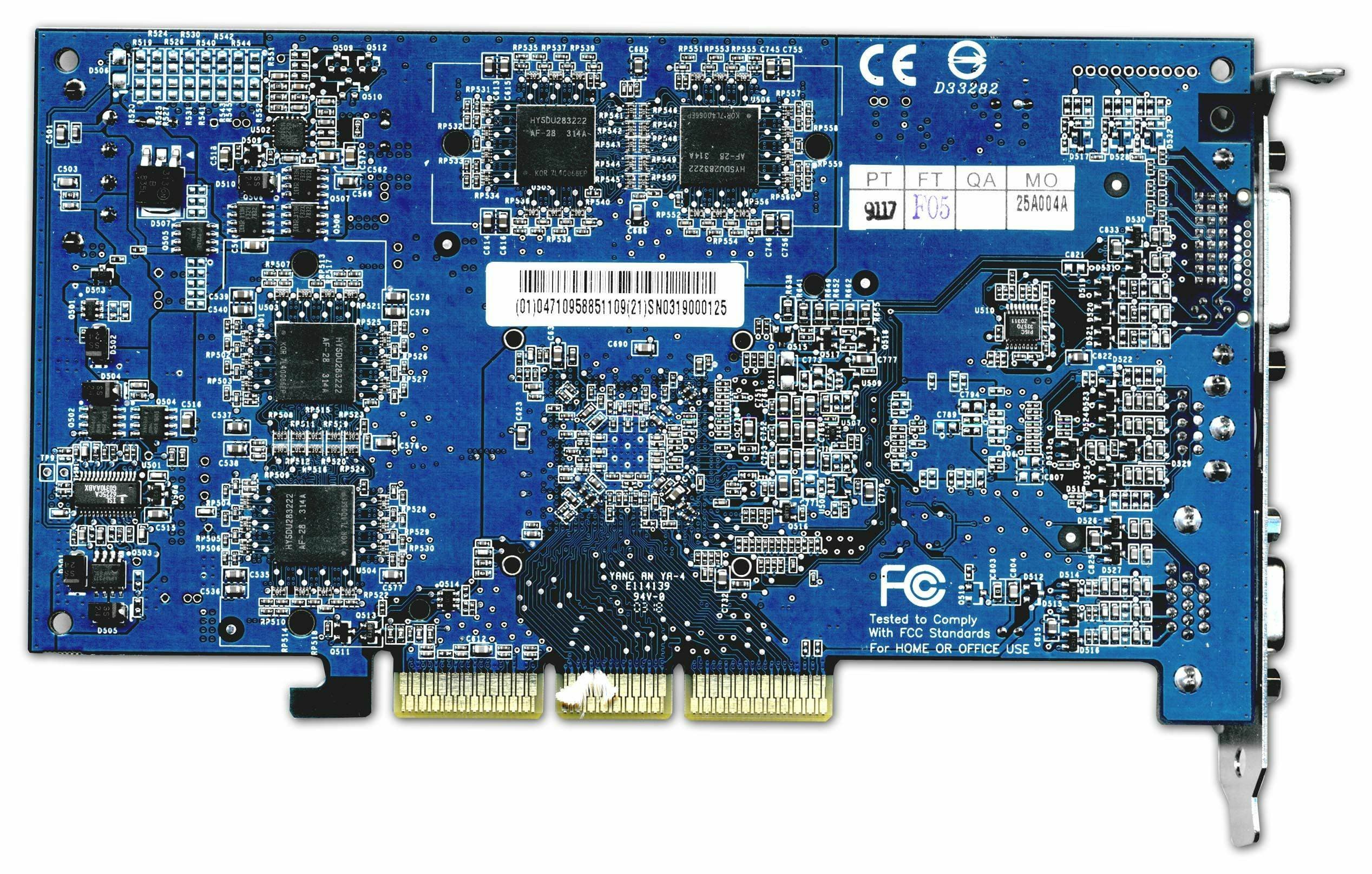 | Все карты имеют интерфейс AGP x8/x4/x2, 128 МБ памяти DDR SDRAM , размещенной в 8-ми микросхемах на лицевой и оборотной сторонах PCB. | |