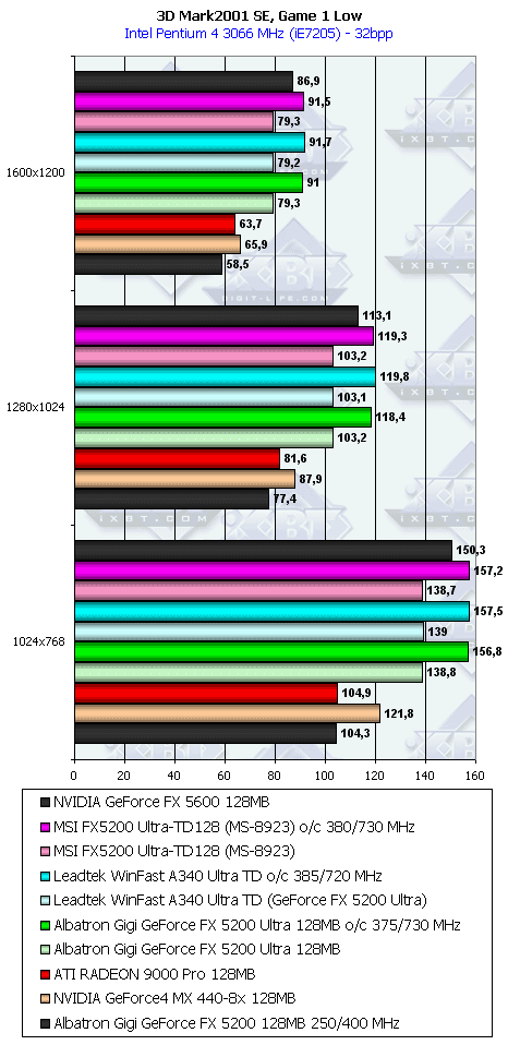 | Albatron Gigi GeForce FX 5200 Ultra 128MB | 1600x1200x85Hz, 1280x1024x120Hz, 1024x768x160Hz (с качеством все в порядке!) |
