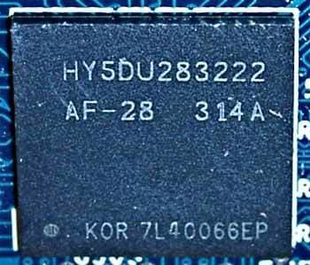 | Микросхемы памяти производства Hynix. Время выборки у микросхем памяти 2.8ns, что соответствует частоте работы примерно 350 (700) МГц, память работает на частоте 325 (650) МГц. Частота работы GPU — 325 MHz. | ![]() |