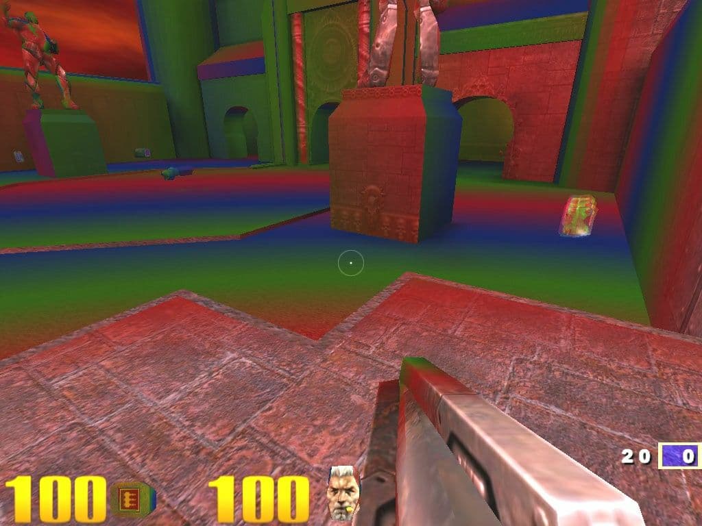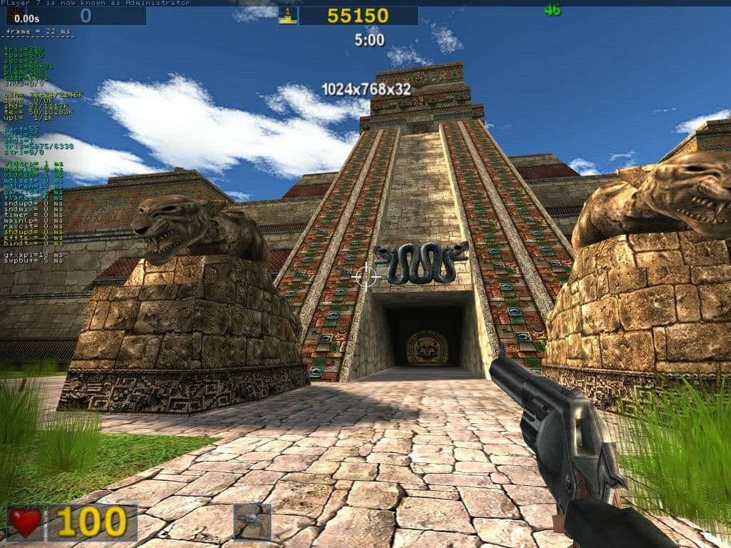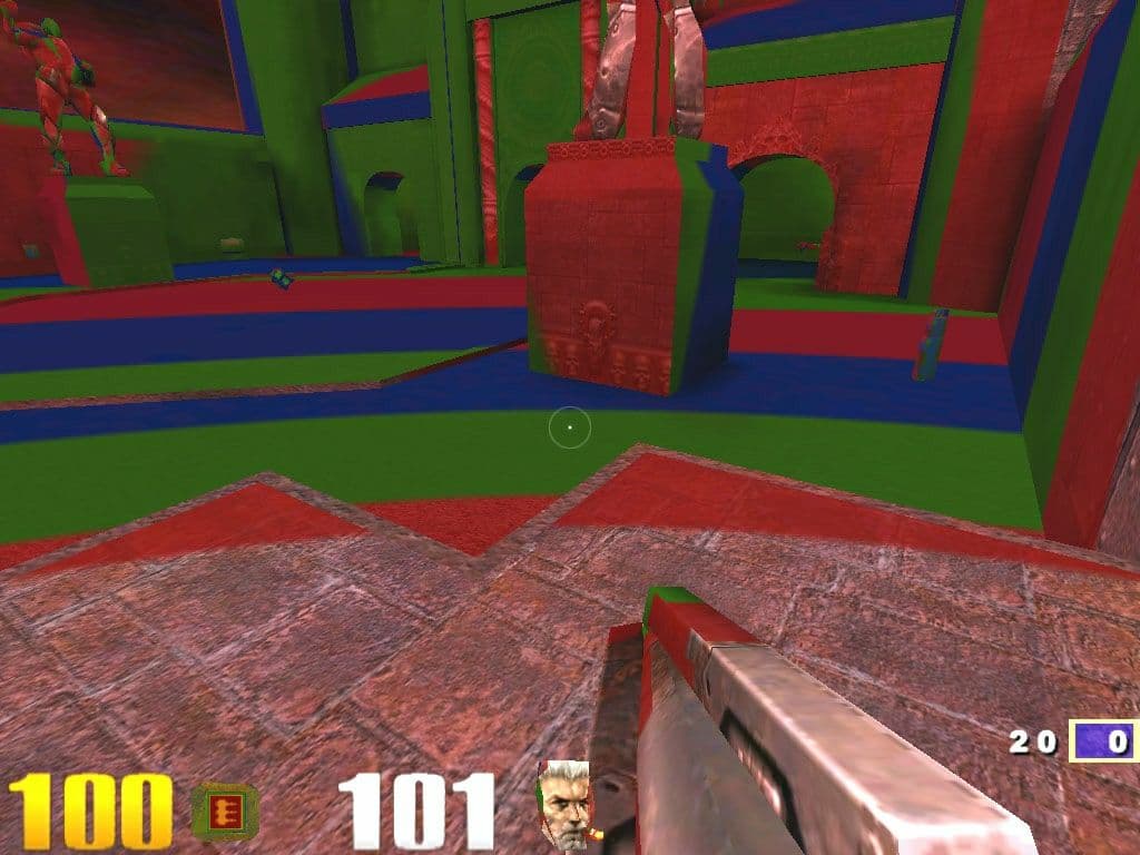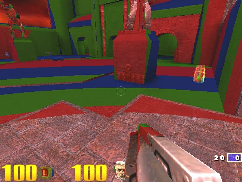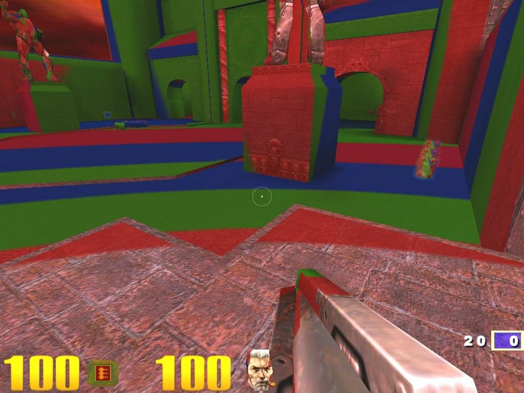 детализации — High, уровень детализациитекстур — №4, S3TC OFF, плавность кривых поверхностей резко увеличена при помощи переменныхr_subdivisions «1» иr_lodCurveError «30000» (подчеркну, что по умолчанию r_lodCurveError «250» !), конфигурации можно скачать тут - Unreal Tournament 2003 Demo (Digital Extreme/Epic Games) — Direct3D, Vertex Shaders, Hardware T&L, Dot3, cube texturing, качество по умолчанию
