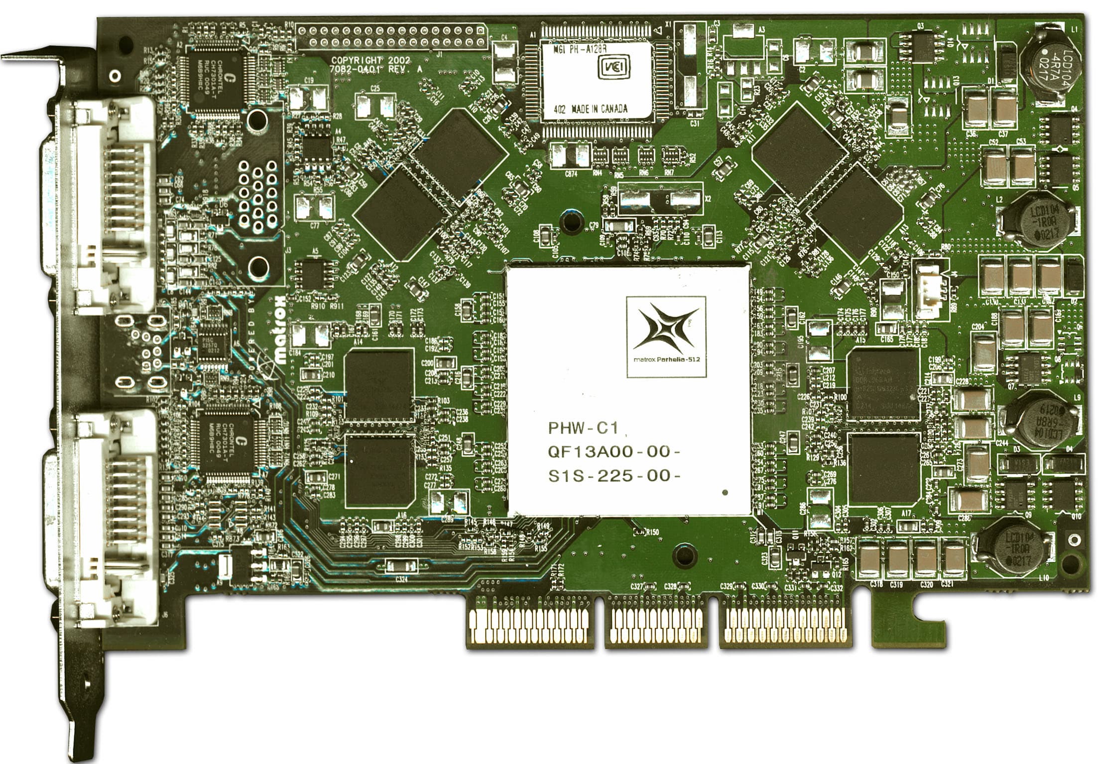 Как мы видим, карта очень большая по длине, и примерно равна PCB карты Voodoo5 5500. Расположение микросхем напоминает Matrox Parhelia: