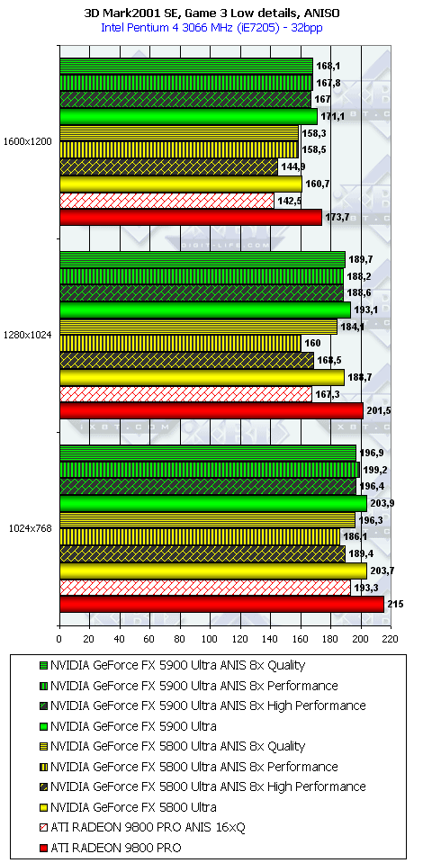 А что же с анизотропией? Там, по сути все тоже самое, что было и ранее у NV30 (в плане качества). Давайте просто посмотрим на скриншоты из 3DMark2001, полученные на разных предустановках IntelliSample (анизотропия везде 8х).
