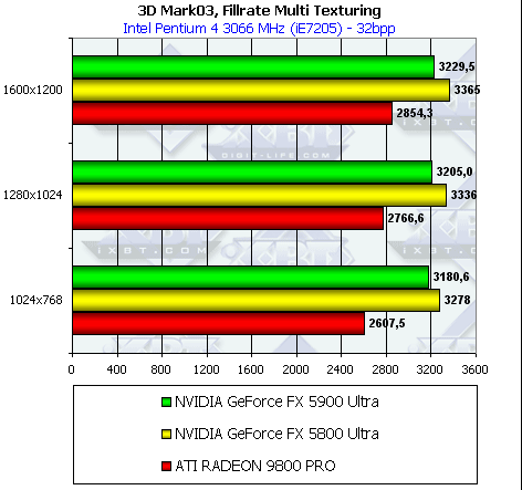 - Однако наличие 256-битной шины и тут сильно помогает, и в комплексных режимах NV35 одерживает убедительную победу. И все же не будем забывать про то, что этот тест не является столь объективным, как другие, под него как NVIDIA, так и ATI могут делать оптимизации (или просто говоря, трики, заточки), мы уже видели ранее это на примере теста Pixel Shaders, когда просто драйверами NVIDIA смогла поднять скорость у NV30 в 4(!) раза, когда на деле скорость PS у NV35 особо не выросла.