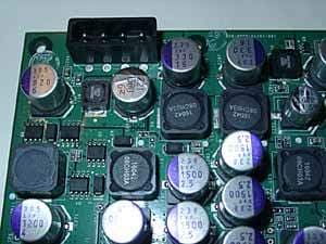Завершая рассмотрение карты, заметим, что весь "хвост" у нее отдан системе питания, где имеется и разъем для подключения внешнего питания от БП.