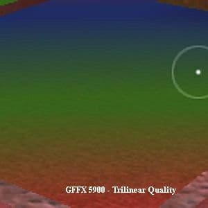 - Performance — в идеале драйвер пытается определить оптимальные по качеству алгоритмы фильтрации. Пример подобных оптимизаций можно посмотреть в статье Алексея Николайчука aka Unwinder. В GeForce FX в дополнение к сказанному с статье используется анизотропная фильтация, требующая меньшего количества текстурных выборок для большинства пикселей. Также изменен алгоритм трилинейной фильтрации — чипы NV3x позволяют использовать режим, в котором выборка и фильтрация одновременно из двух MIP-уровней производится только для части поверхности, находящейся наиболее "близко" к переходу между MIP-уровными. Для остальной поверхности выполняется выборка и фильтрация только одного из MIP-уровней, это приводит к двукратному росту скорости фильтрации текстур в этом месте.