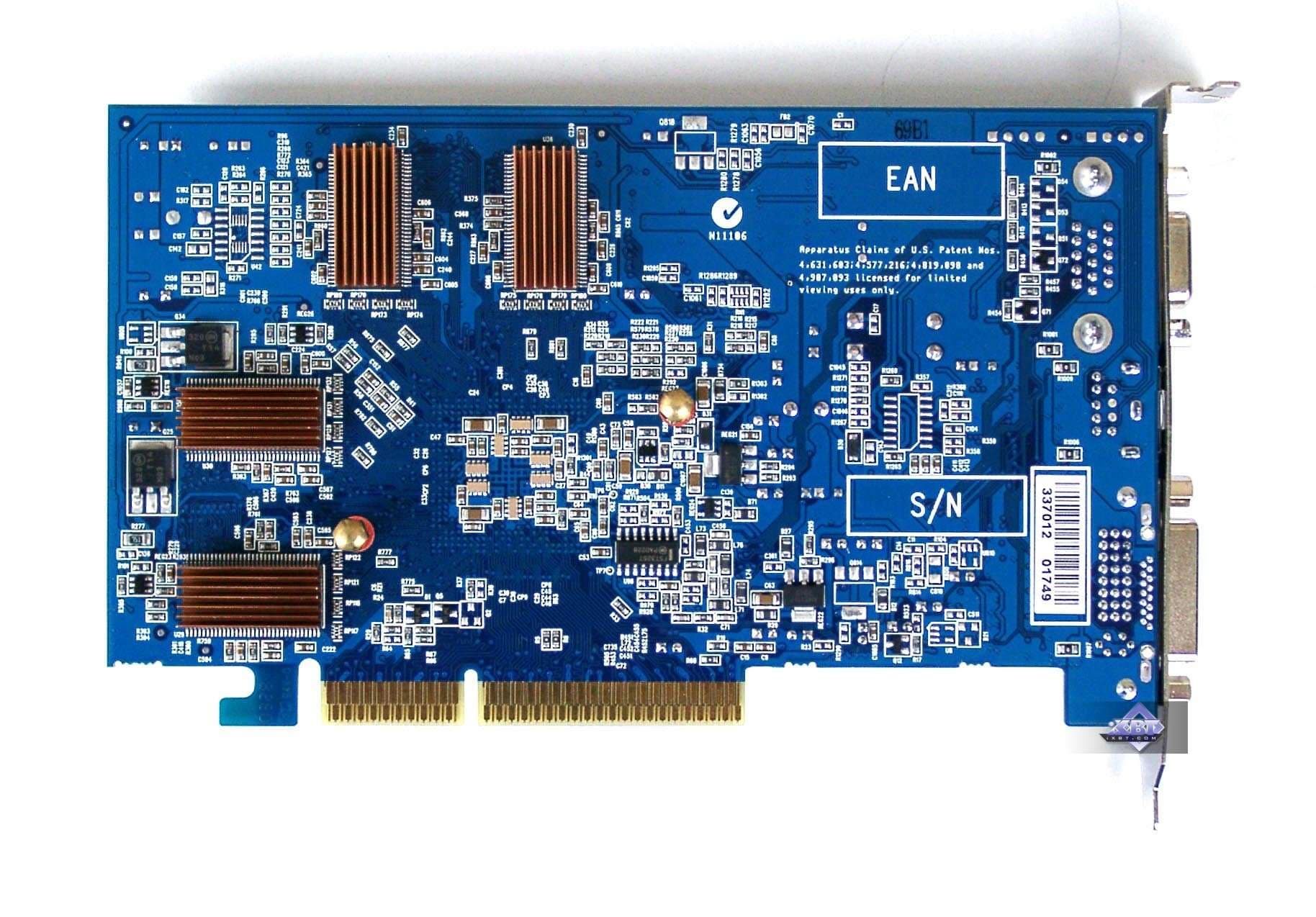 | Карта имеет интерфейс AGP x8/x4, 256 МБ памяти DDR SDRAM , размещенной в 8-ми микросхемах на лицевой и оборотной сторонах PCB. Микросхемы памяти Hynix. Время выборки у микросхем памяти 4ns, что соответствует частоте работы 250 (500) МГц, память же работает на традиционной для RADEON 9600 частоте 200 (400) МГц. Частота работы GPU — 325 MHz. Интерфейс обмена с памятью — 128 бит. | ![]() |