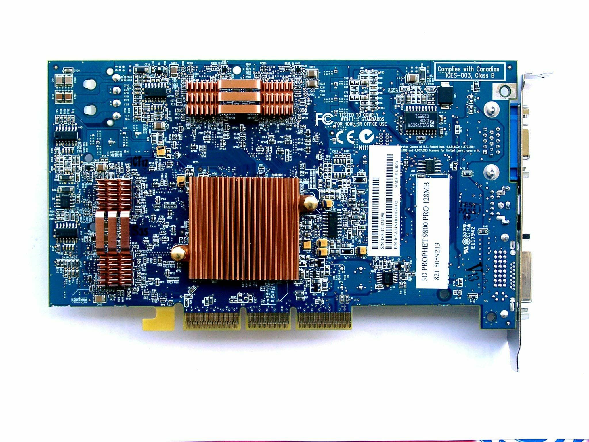 RADEON 7500 особого интереса не представляет, а вот если снять кулер с RADEON 9800 PRO, то мы можем увидеть GPU R350.