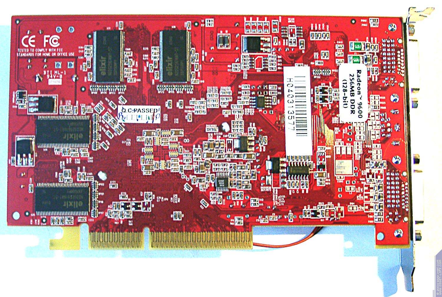 - RADEON 9600 (128/256MB DDR): 325/200 (400) MHz, 128bit шина обмена с памятью, 4 конвейера рендеринга и 4 текстурных блока (пиковая скорость закраски — 1400 мегапикселей и мегатекселей в секунду), DirectX 9.0;