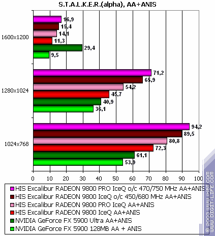 Впору сравнивать RADEON 9800 с FX 5900XT, а RADEON 9800 PRO с FX 5900, но мы все же решили сделать более жестким сравнение, и даже в этом случае продукты HIS были на высоте.
