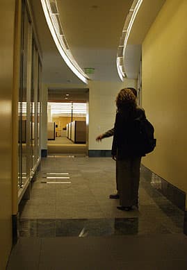 Впрочем, безопасность и еще раз безопасность. Вам распечатывают одноразовый бейджик, который можно, например, наклеить на рубашку. В этом же холле расположен некий «шкаф почета» — в нем расставлены различные награды от партнеров NVIDIA и прессы. Но это попса — мы же серьезные парни, не будем тратить время на разглядывание наград и прочих шариков фонариков, а отправимся в святая святых — внутренние лаборатории и помещения NVIDIA.